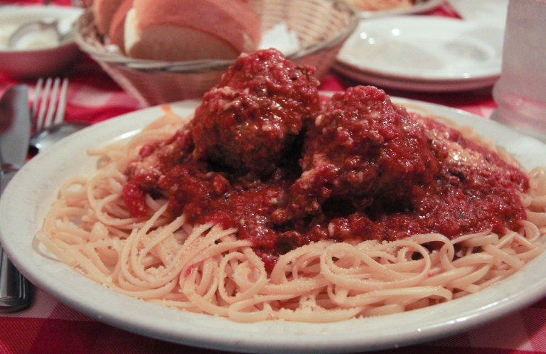 Nick’s Spaghetti House is on Commercial Drive. Serving Vancouver for over 53 years, (as said on their menu), the interior looked like it probably did 53 years ago, with wood paneled walls and red checkered table cloths adding to its “charm”. The menu is old school, lasagnas, ribs&pasta, chicken&pasta, steak&pasta. But because it’s called Nick’s Spaghetti House, I had to order the spaghetti with meatballs.