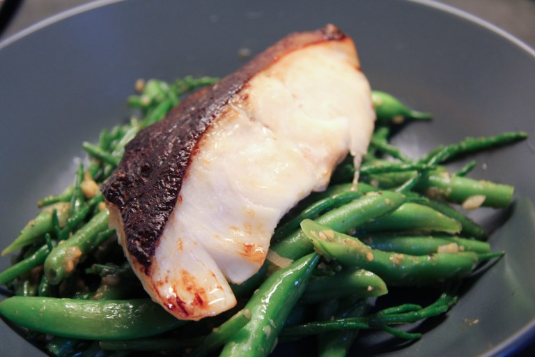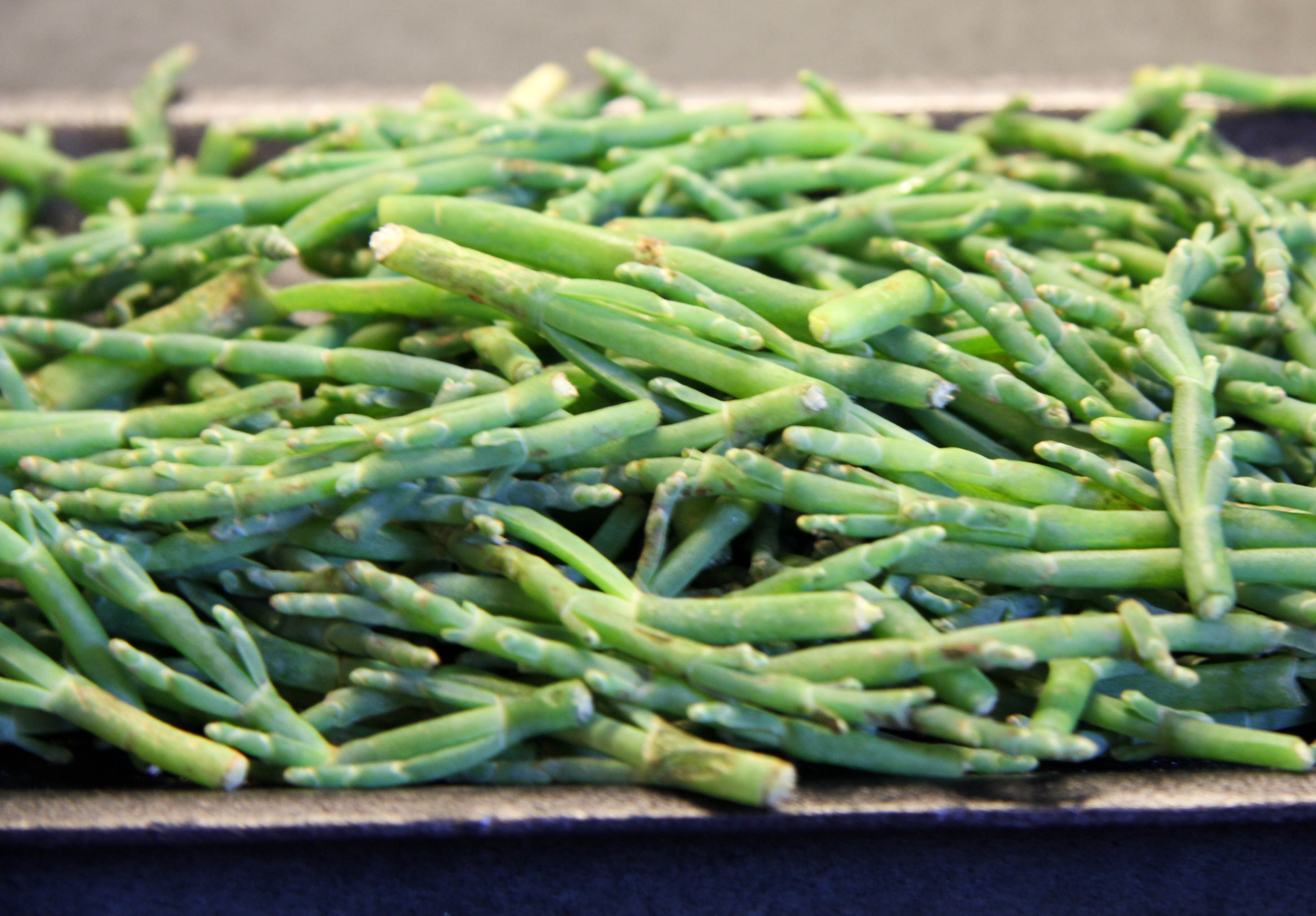 My mother taught me well, so knowing that no meal is complete without vegetables, I wandered in the produce section looking for something to complement the meal. I found some green beans and snap peas. Something else caught my eye, sea asparagus. I’ve had sea asparagus before but never prepared it myself, so I figured I’d give it a try.