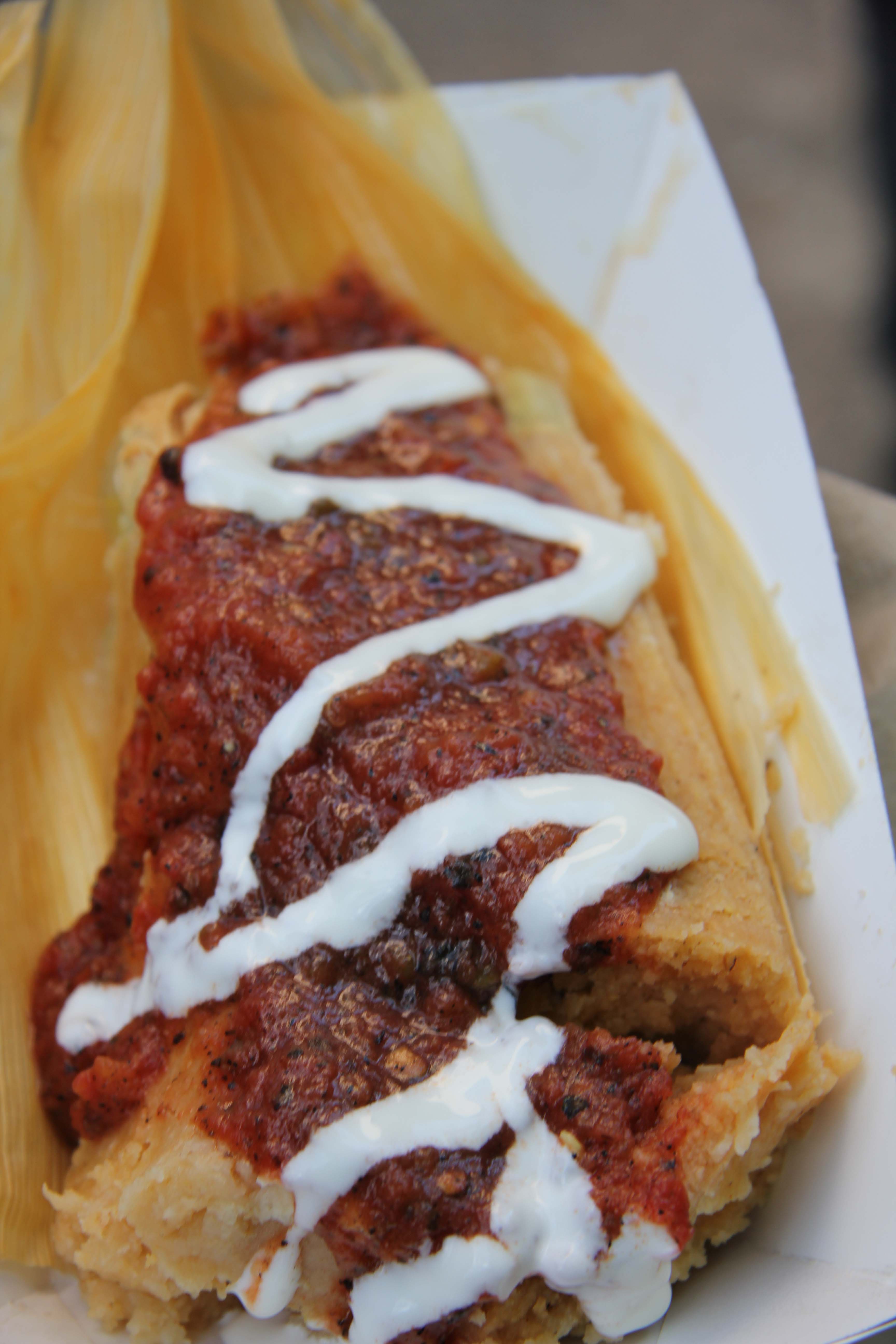 In the meantime, I wandered around and found a tamales stand. I’m always in search for great tamales, but for the most part I’m disappointed. I ordered the artichoke and queso tamale with hot salsa and sour cream. It wasn’t the most traditional tamale I’ve ever had, but it was definitely tasty! The masa was light and fluffy and the cheese and bits of artichoke added a lot of flavour to the tamale. The salsa was good, although I could have done without the sour cream.