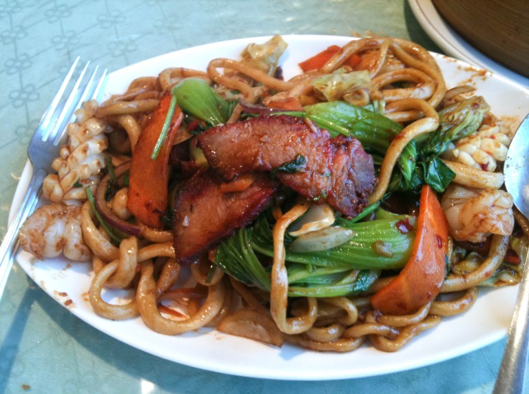 After these 3 dishes it’s always a toss-up with what to order. But it seems more often than not, when I go with Ben’s lunch crew, we end up with the Peaceful House Noodles with meat, seafood and vegetables in a chili garlic sauce.