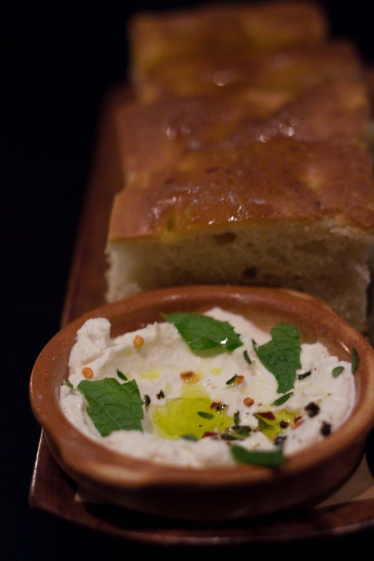 Homemade focaccia with the best ricotta Ive ever tasted. I ate 3/4 of the dish on 1 slice of focaccia!