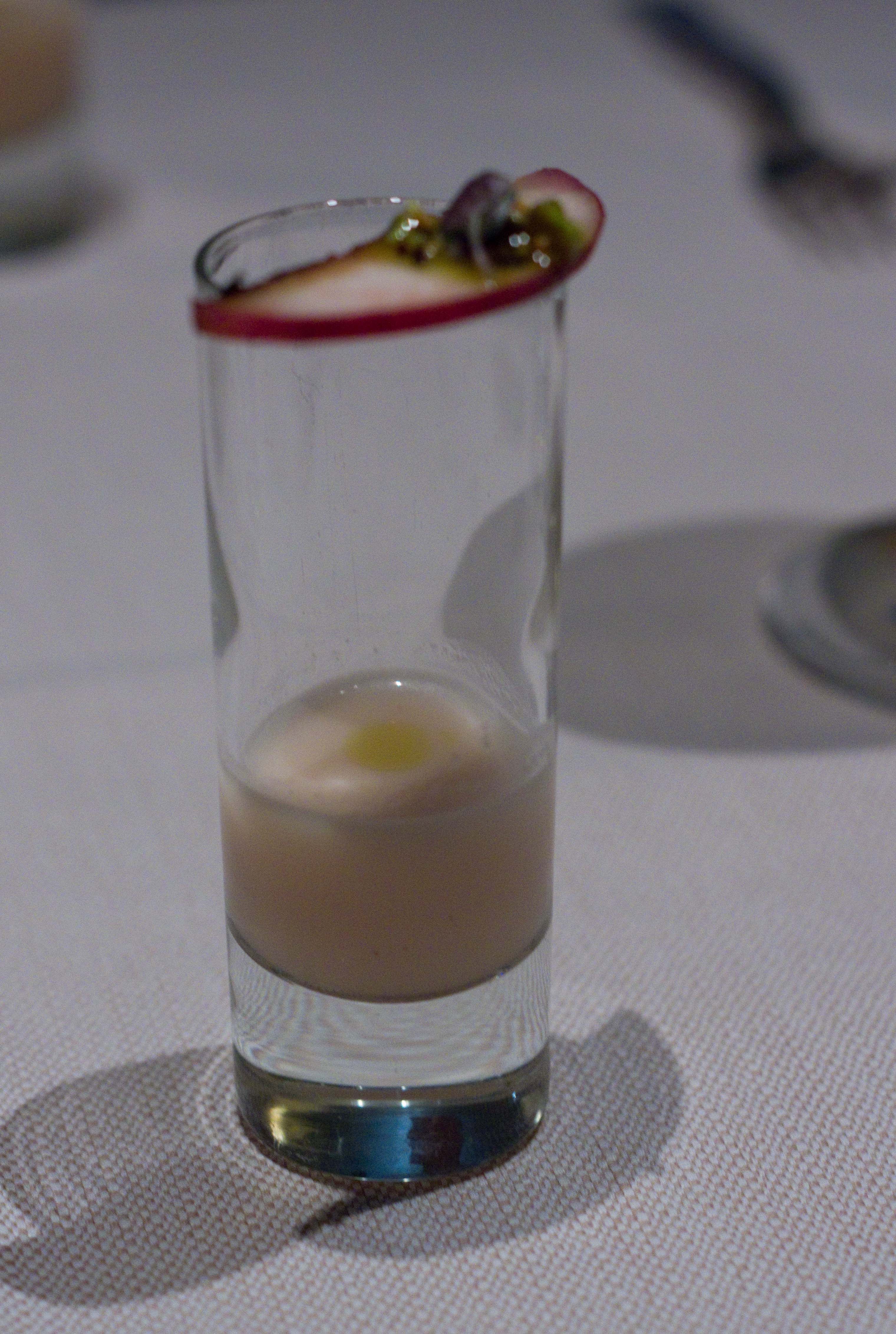 I wasnt paying attention when we got this. All I heard was pickled plum with pistachio. What the cold soup was, I couldnt tell you, not even after I tasted it. And I have a great palate for picking out flavours!