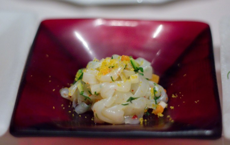 Cuttlefish tagliatelle, soffrito crudo and bottarga di muggine – my favorite of the three.