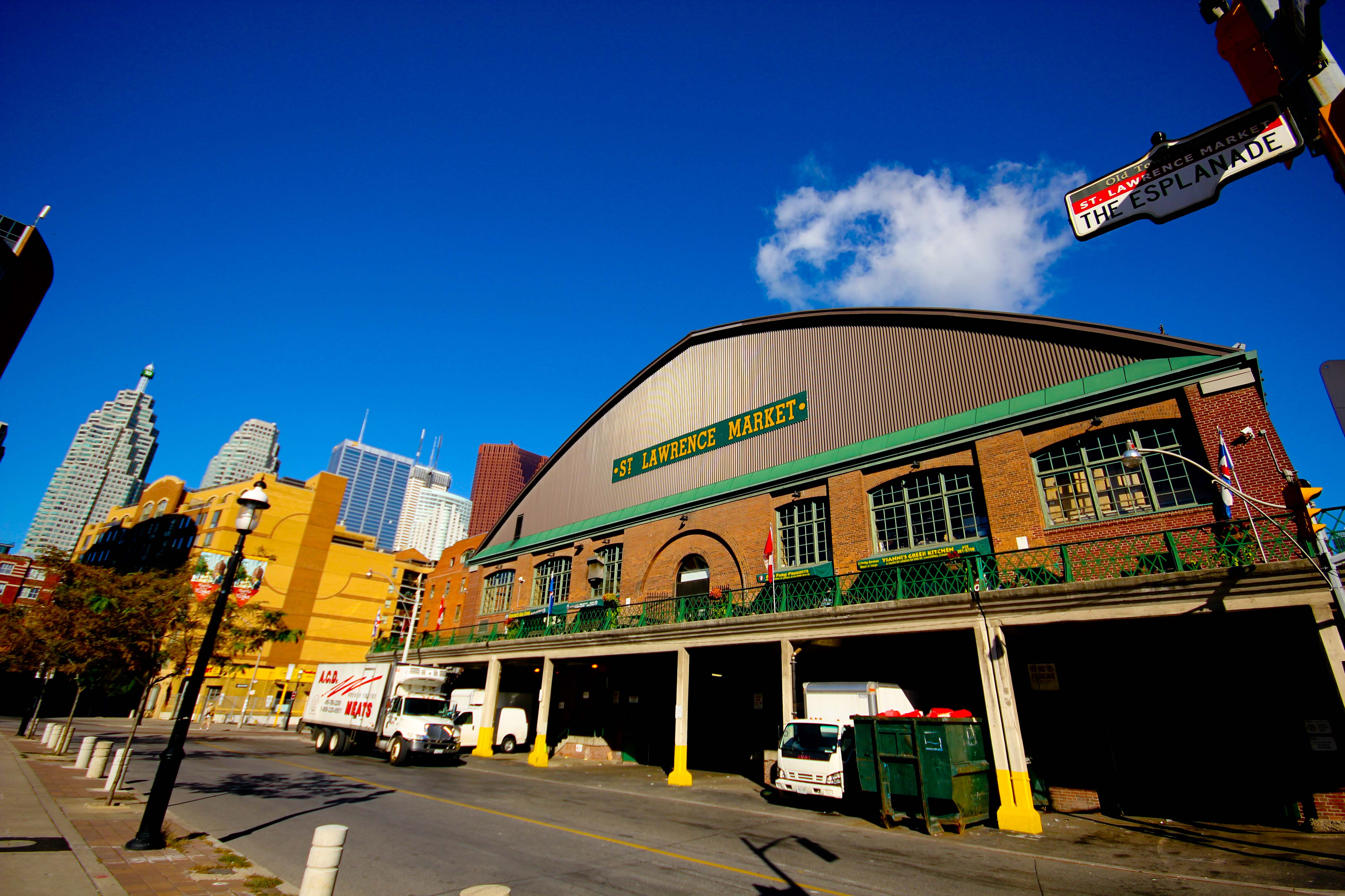 In my food loving opinion, the real taste of a city comes from its food markets, so with that in mind I eagerly anticipated visiting both the St Lawrence and Kensington Markets in Toronto. I made a date with a fellow food lover to meet at the St Lawrence Market early Tuesday morning, (it’s closed on Mondays). When I heard he’d be a bit late, I took the opportunity to snap a few photos outside.