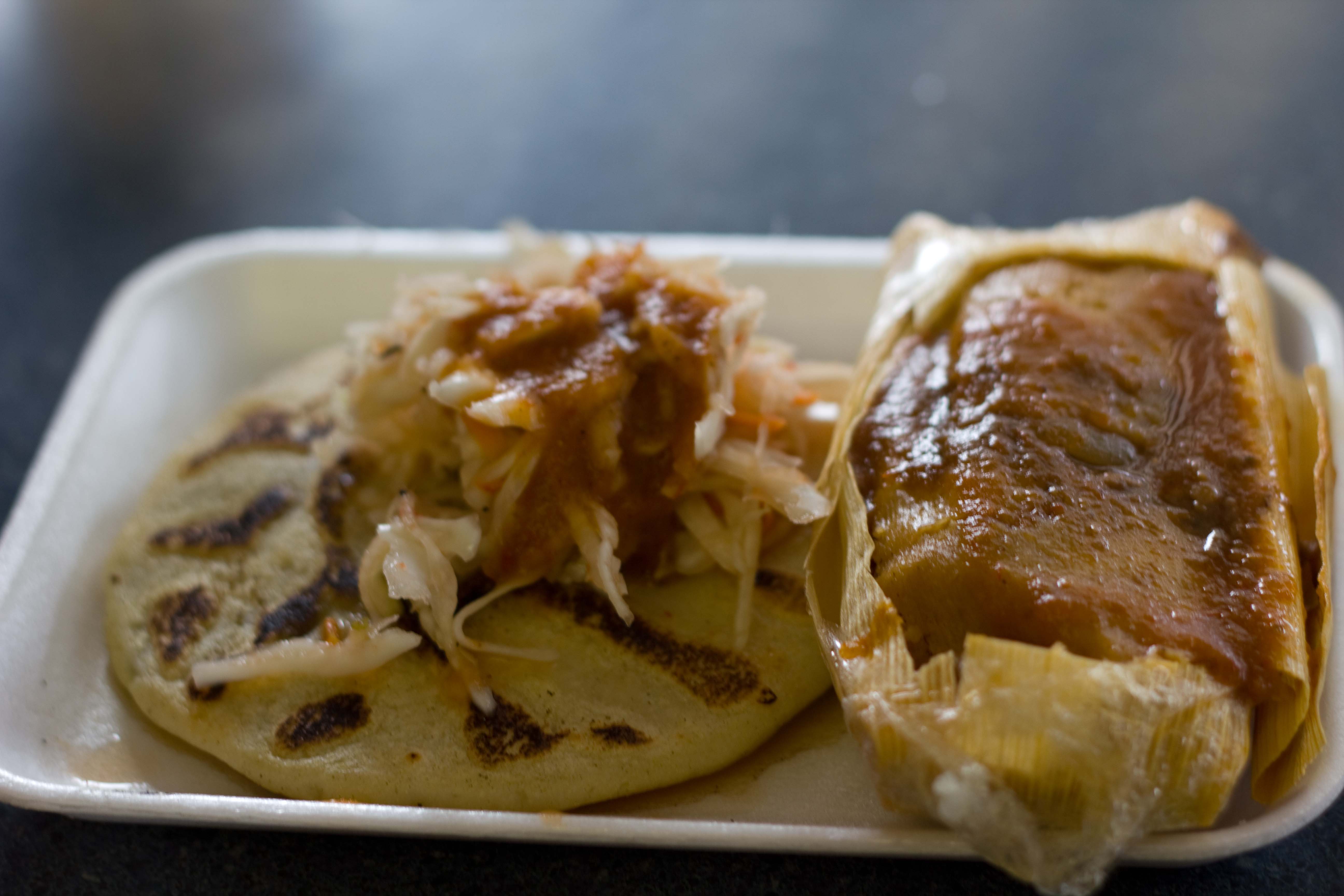 Our next stop was at Emporium Latino for some good ol’ street treats. We debated over the extensive menu and decided on a Mexican style chicken mole tamale and El Salvadorian pork and cheese papusa. My excitement waned a bit when the sweet old cook in the back grabbed my tamale out of the fridge and threw it in the microwave. But I hung around the back and witnessed as she carefully prepare my papusa from scratch.