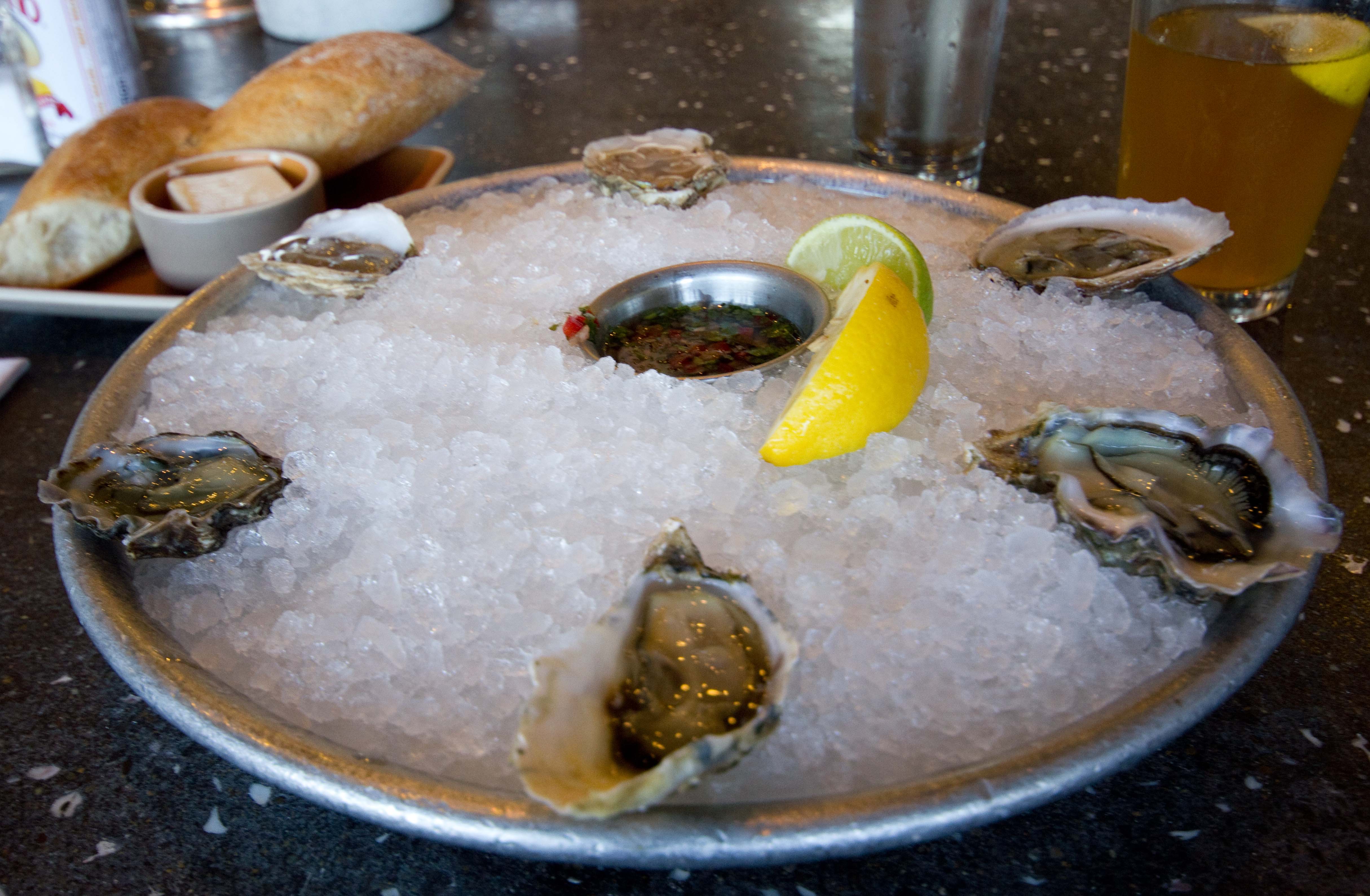 I wandered by Hog Island and saw some paddlers I met from the weekend. They convinced me to grab a seat at the bar and join them for a few. I had a half-dozen oyster sampler and a glass of Blue Star wheat beer. The selection was pretty wonderful.