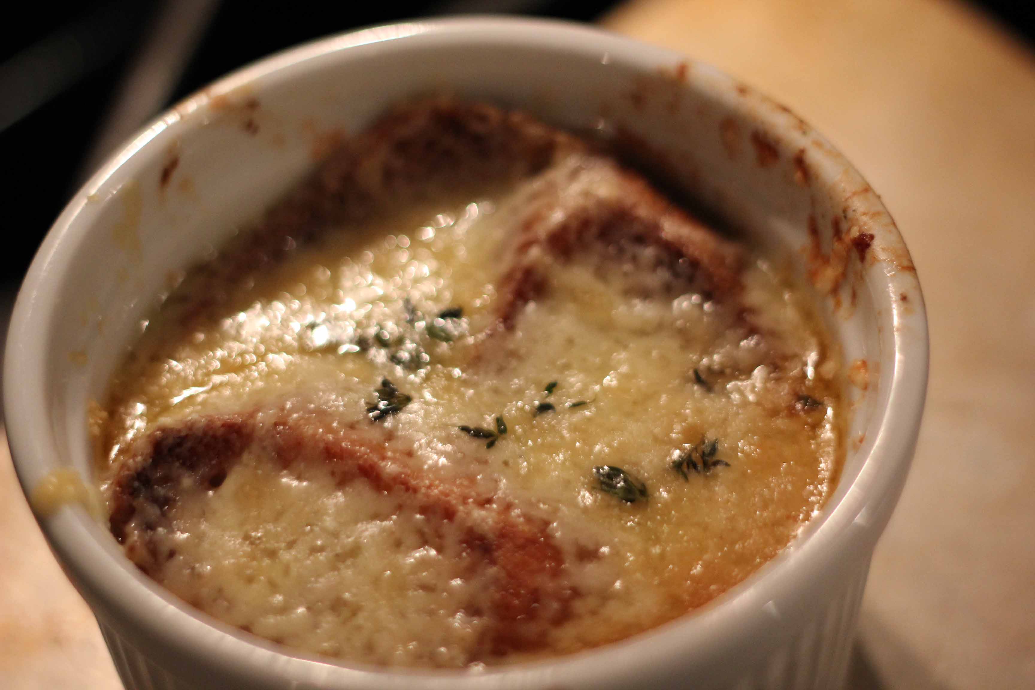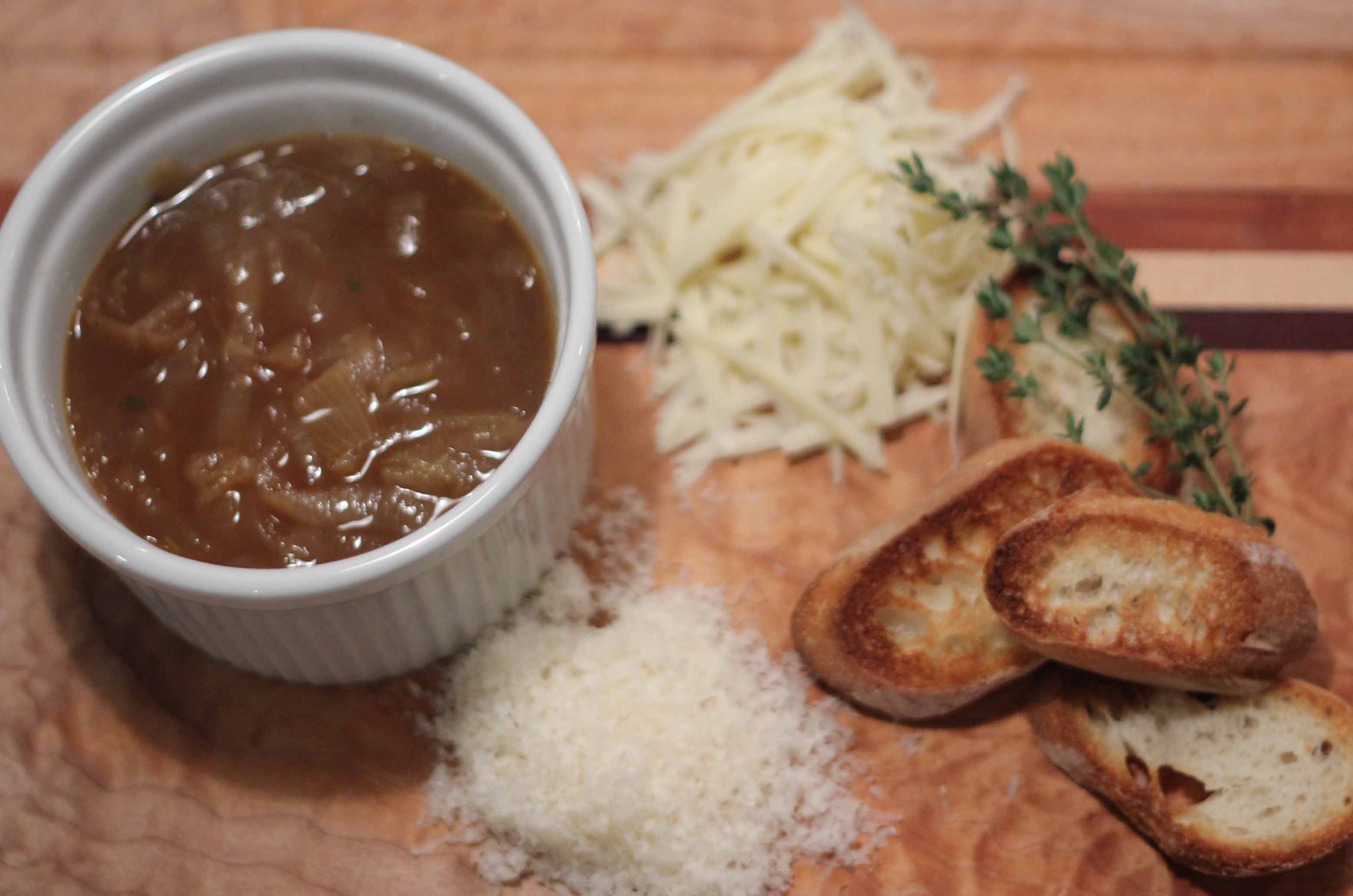 I wake up every morning and one of the first thoughts that goes through my head is “what am I going to have for dinner tonight?”. On grey dreary mornings where I hear the rain pounding on the roof, that thought gets modified to, “what am I going to have for dinner tonight that will warm my soul?”. This past Monday morning was one of those mornings and knowing that I had all day to put into my answer, I easily decided on French Onion Soup.