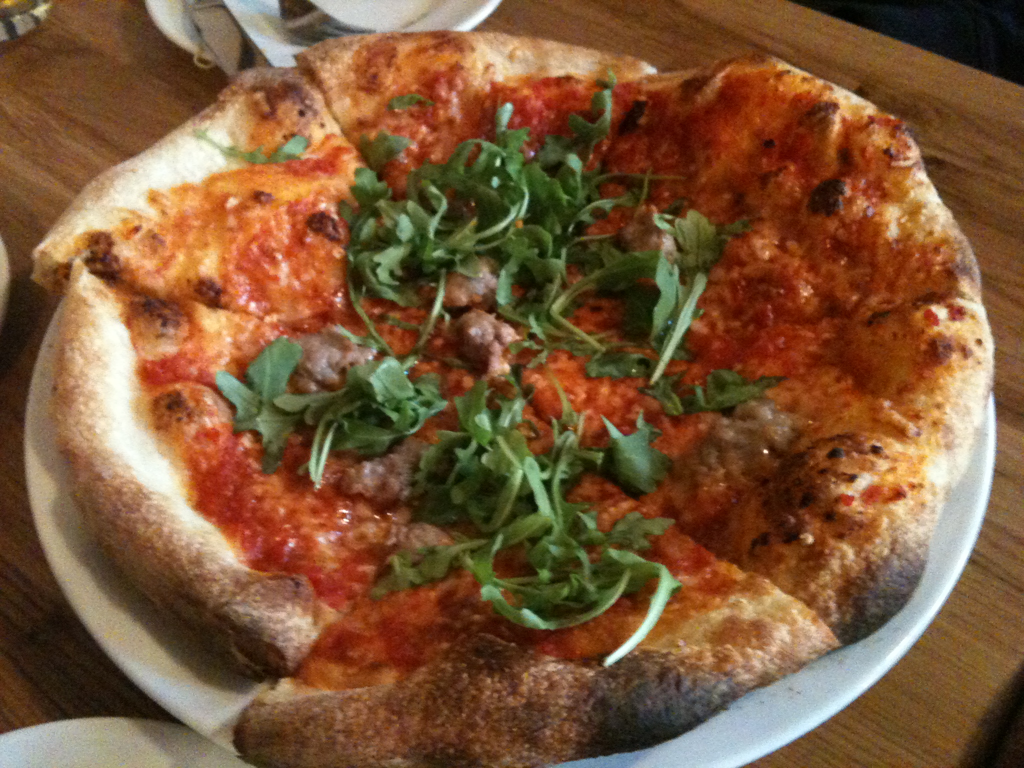 The crust on this Salsiccia pizza was heavenly. Light, crispy with the right amount of chew. It may even be better than Otto(NY) or Mozza(LA). Theyre a bit chintzy on the toppings though, barely a bite of sausage per piece.