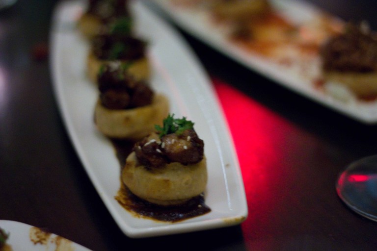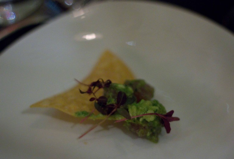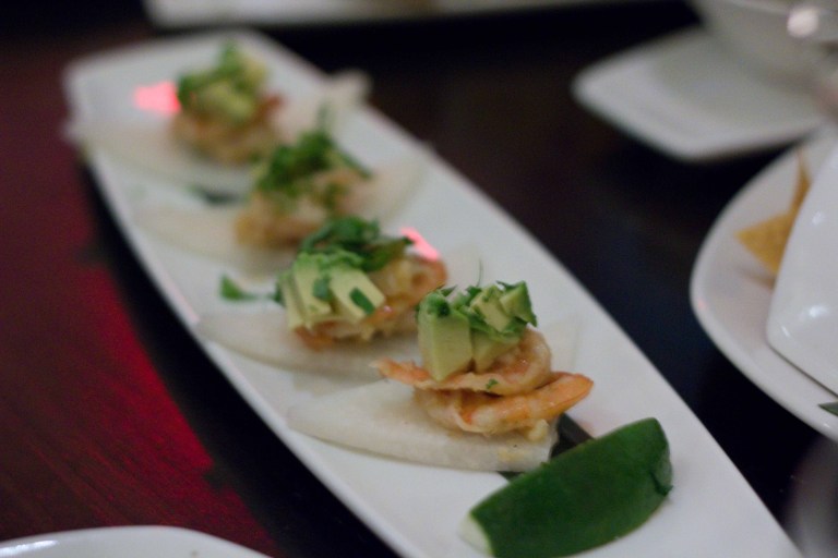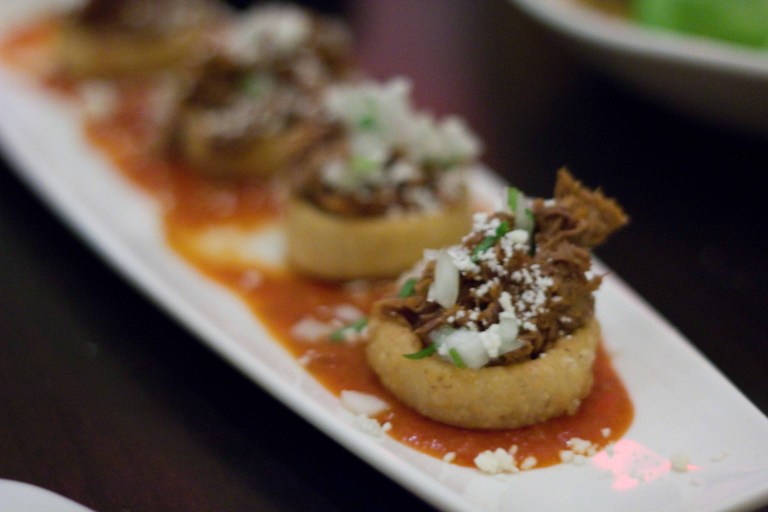 Classic guacamole - Warm tortilla chips complemented the chunky avocado with a nice citrus zing. I have rarely met a guacamole I haven't liked though.Grilled Mazatlan Blue Shrimp Tostadita - The garlic mojo brought out the great grilled shrimp flavour and the crisp jicima vehicle was a nice counterpart to the luscious avocado.Woodland mushroom ceviche - a mushroom ceviche? Yup, and it was good! The mixture was bright and citrusy and the serrano chile added a nice zing at the end.I thought this Alaskan Halibut ceviche on my plate was guacamole. Imagine my surprise when I bit in to little morsels of fish!I was happy that we ordered a salad. The crunchy fresh lettuce was a great contrast to all of the heavier dishes we'd ordered.Slow-cooked Sonoma duck taquitos - one of our favourites of the evening. But who wouldn't like a crispy fried hot tortilla holding rich melt-in-your-mouth duck?Chicken tamale with Oaxacan yellow mole - The corn masa was fluffy and soaked up the mole wonderfully. Of all the jazzed up versions of Mexican street food we had, this one didn't live up to my expectations. I like my tamales wrapped like a present. This one was just too complicated for me.Shredded short rib sopes - bite sized pieces of masa topped with tender beef and roasted tomato/chili sauce.Pork Belly sopes - the smoky/sweet salsa negra. My favourite bite of the evening.