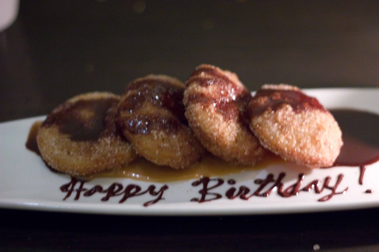 Cajeta - Mexican caramel goat milk ice cream with pecan bacon streusel was my favourite of the evening.For the life of me, I can't remember what these were. Too bad, because I remember liking them.Happy Birthday Ken! - Bunuelos with salted caramel ice cream