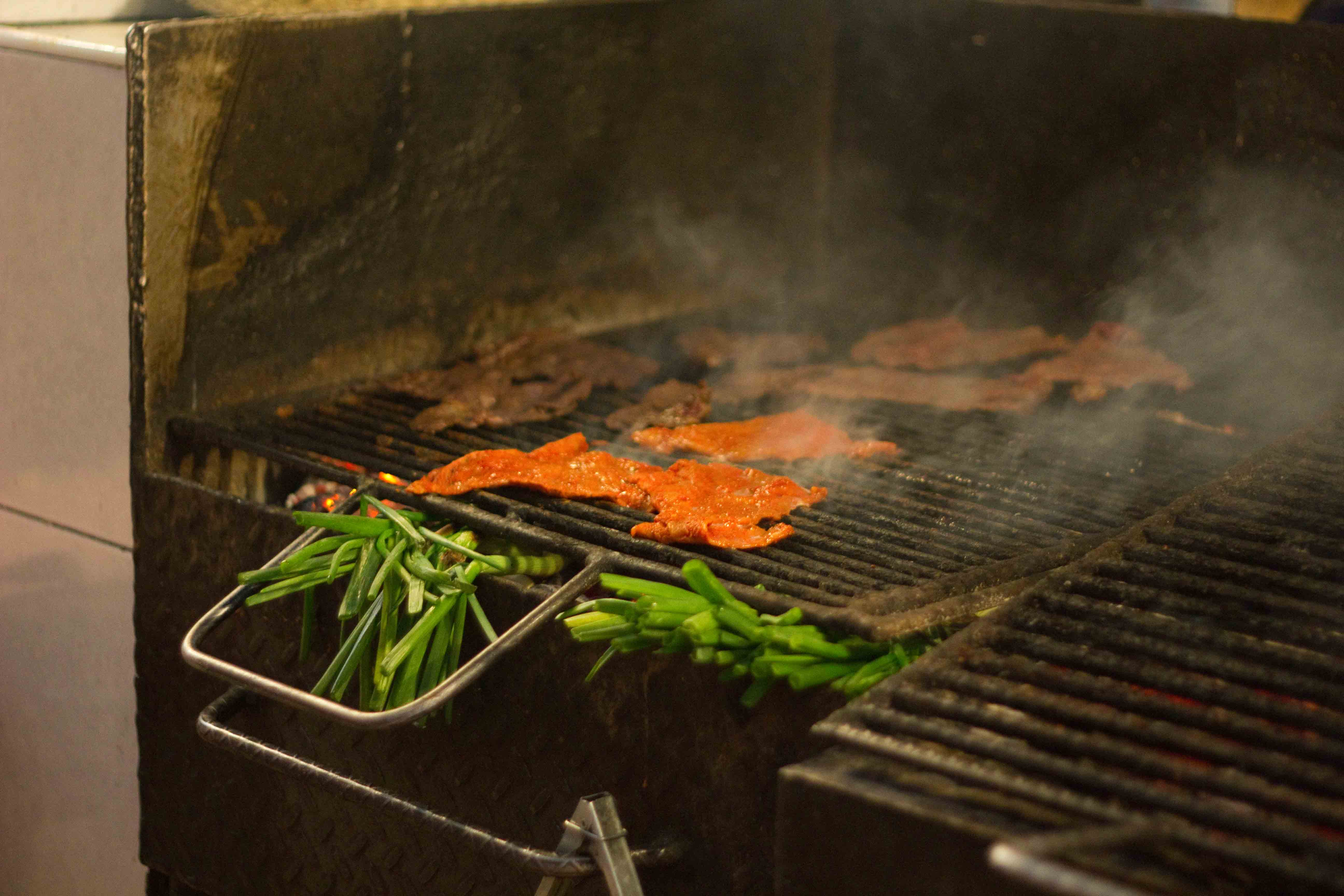 We ordered some onions and chiles de agua which are very spicy. You take these vegetables back to the grill and they put them directly onto the coals.