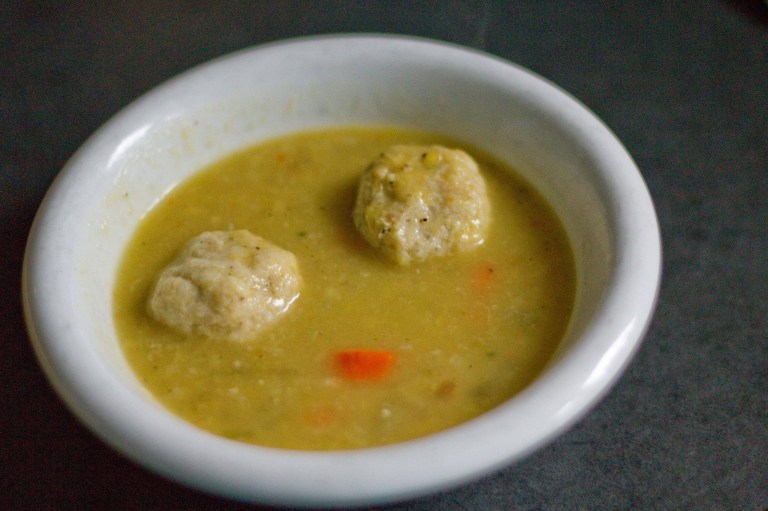 This is day-old matzo ball soup. I staged an after-shot to give you an idea of what I’m talking about.