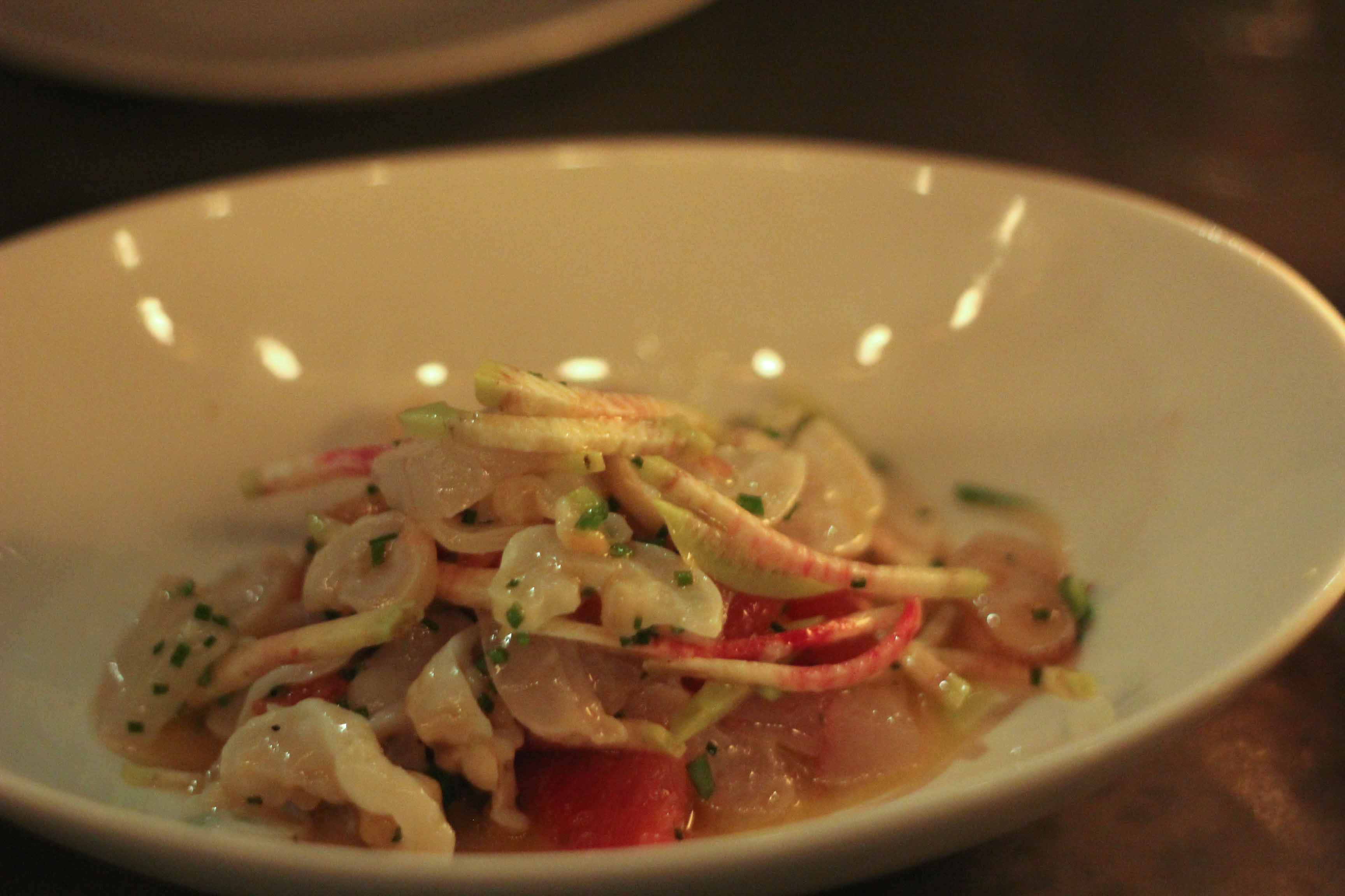 Sweet Kumamoto oysters with a scallion mignonette and Penn Cove oysters with vanilla oil were a fantastic way to begin the evening.Hamachi and goeduck crudo with grapefruit and watermelon radishes made my mouth so happy, I couldn’t get the “mmmmm’s” out of my mouth.Tagliatelle with clams, speck, cabbage and cream was the perfect combination of texture and tastes. Cabbage is totally under-utilized in restaurants and I was delighted to taste it in this dish.Perfectly cooked mackerel on top of cabbage, potatoes and a squash puree. This dish like the one before it was not flashy, but one of the most flavourful fishes I’ve had all year. If you’re in Seattle, go to Anchovies and Olives. You won’t be disappointed.