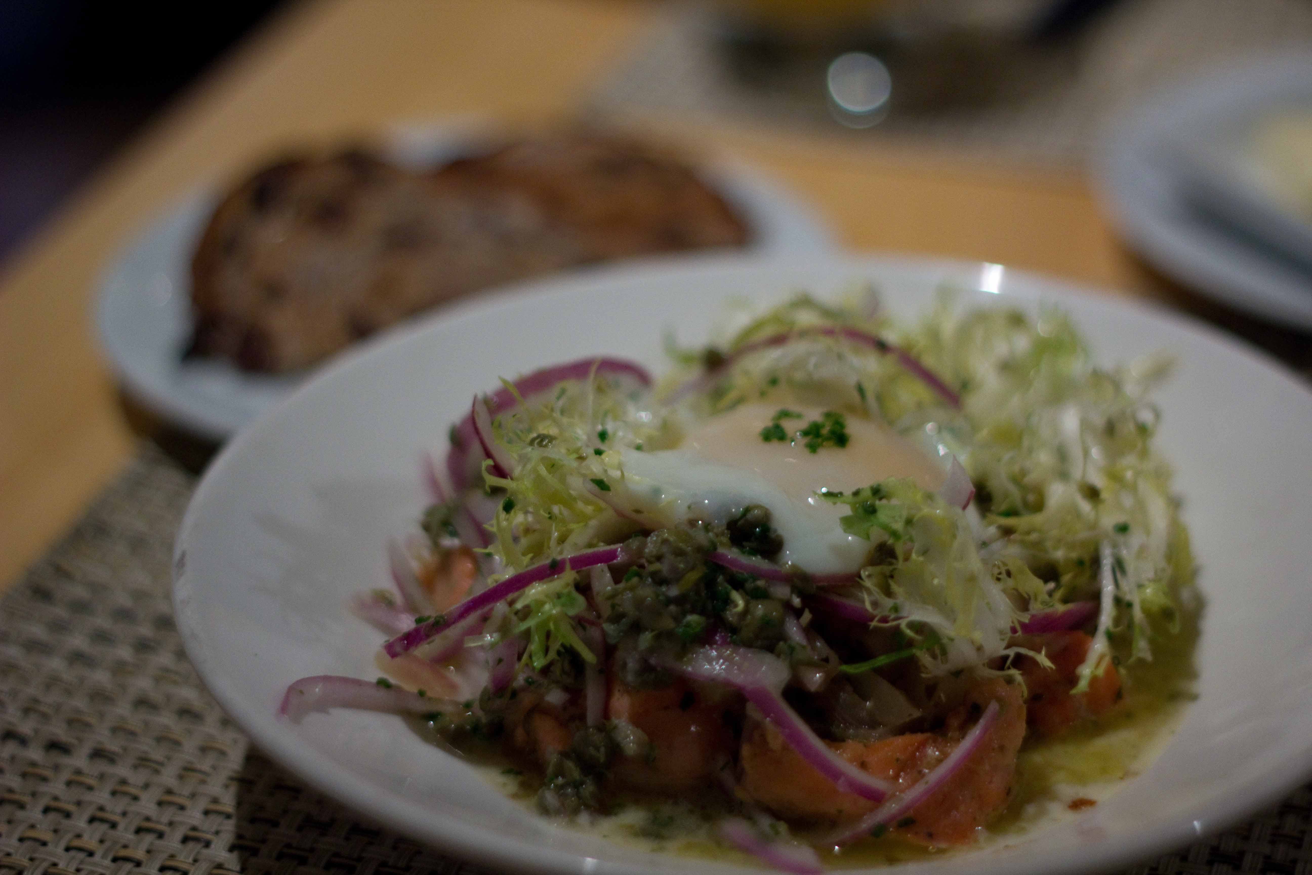 House smoked salmon hash with capers, creme fraiche, a few too many onions and a perfect sous vide egg.Indulgent cheddar biscuits with pulled chicken gravy and 2 fried eggs. A bit rich, but perfect shared.Even before Maria Hines’ appearance on Top Chef Masters, I was curious about Tilth. Located in Wallingford, just west of the U district this cute restaurant is worth the drive.