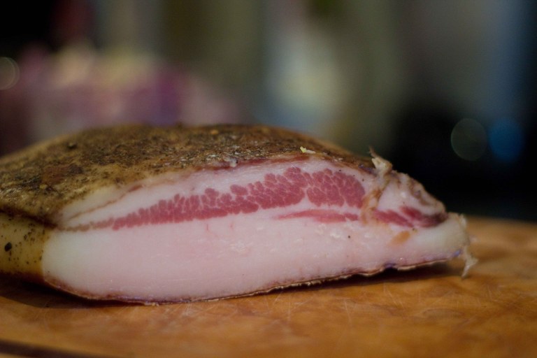 I love going to the market and finding ingredients that inspire me to try something new. For a while now, I have been eyeing the guanciale at Oyama but never really knew what to do with it. When I was at the market last week, I thought I would pick one up, and save for the following Monday’s dinner. That gave me a few days to pour over recipes to decide what best to do with this wonderful piece of cured meat.