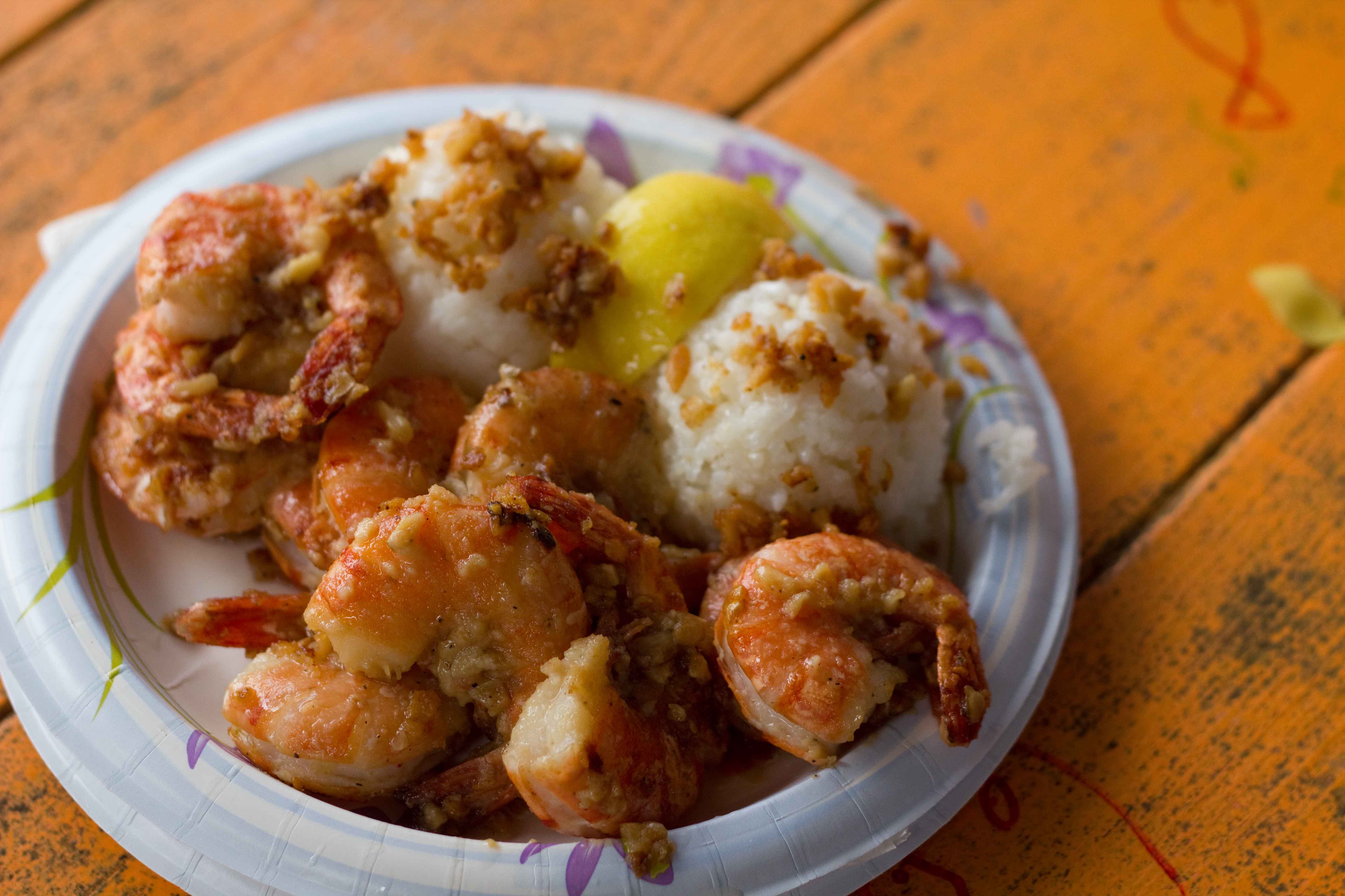 Now that I’ve set the scene, I’ll get to the food. The shrimp trucks of the North Shore are well-known and it seems like everyone has their preferences. I’ve been to a few in the past, (Giovanni’s and Romy’s) but wanted to try others. I read the reviews and came up with a list. Lucky enough I was able to enlist in some help from some other hungry belly’s to increase my sample size.