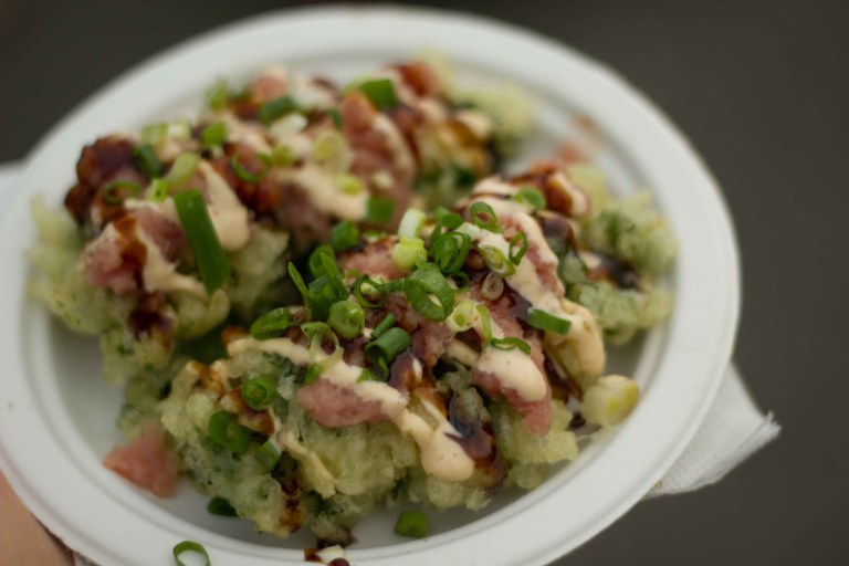 When I travel, a visit to the local farmer’s markets is always high on my list and the one at Kapiolani Community College (KCC) on Saturday mornings in Honolulu has become my favourite. I love the PDX Saturday market, but this one edges that out for its fantastic location at the foot of Diamond Head, the hi-def colours of the produce in the market and the wonderful sun that hits your skin in the middle of winter. The best thing is that this market truly caters to tourists with its high number of ready-to-eat items showcasing their amazing local ingredients with a Japanese flair. I guess that can be a bad thing though, as over the last few years, it’s becoming overrun by tourists and the long lines can be a bit unbearable. I’ve just learned to go early and visit the stalls that don’t have lines because just because it hasn’t hit the pages of the Japanese tour books, doesn’t mean it’s not delicious.