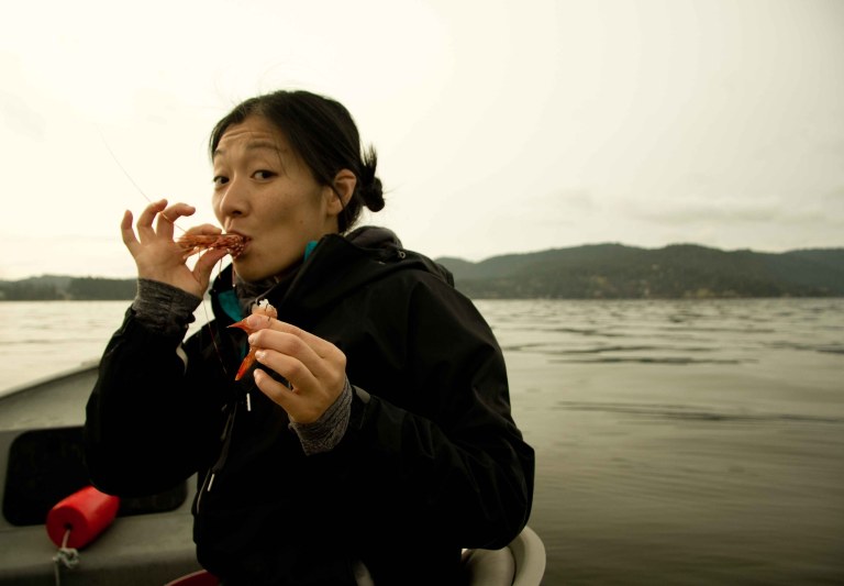 Over the past few years, Mark’s legend has waned a bit… He got a “real job”, moved to Victoria with his wife and kids. But true legends never die and Mark’s magnificent fishing skills surface for us once in a while. Last summer, we had a successful adventure crabbing and the timing of this Spring’s to Victoria visit just happened to coincide with the opening of prawning season in BC. How very convenient for us!