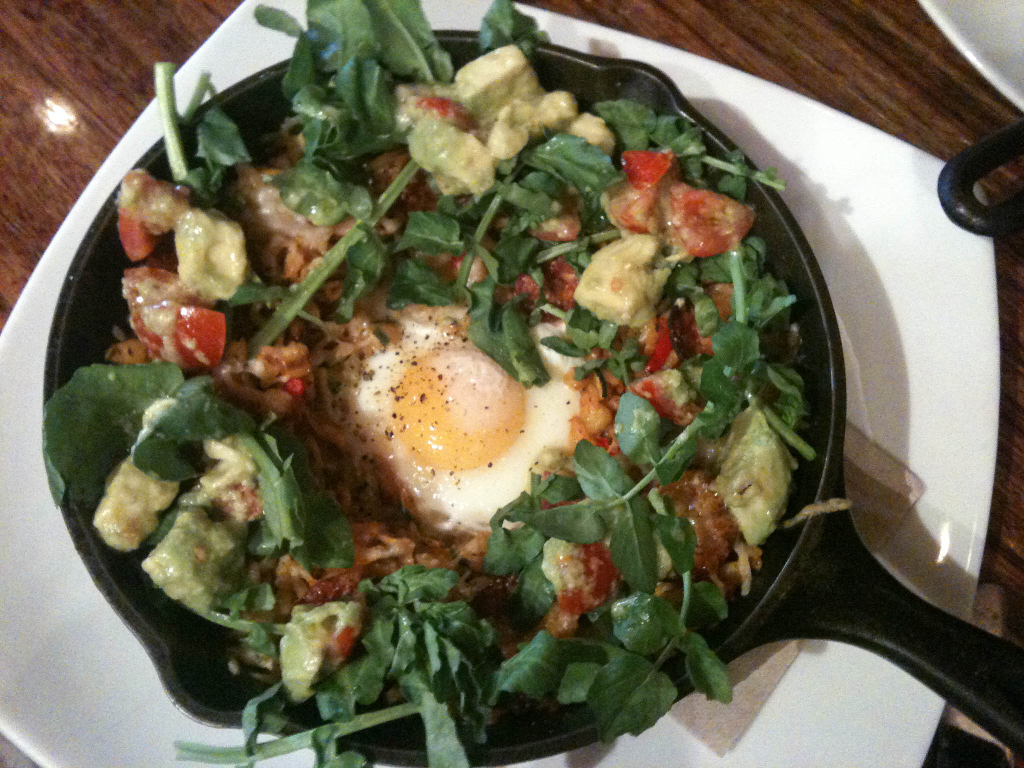 I’m lucky enough that my dining buddy always choses to eat the Fricasse, which is a skillet with 2 fried eggs, braised short ribs, roasted potatoes, caramelized onions, arugula and applewood cheddar. It’s everything but the kitchen sink but in a good way. It’s very delicious, but so filling that I can’t eat more than a few stolen bites.