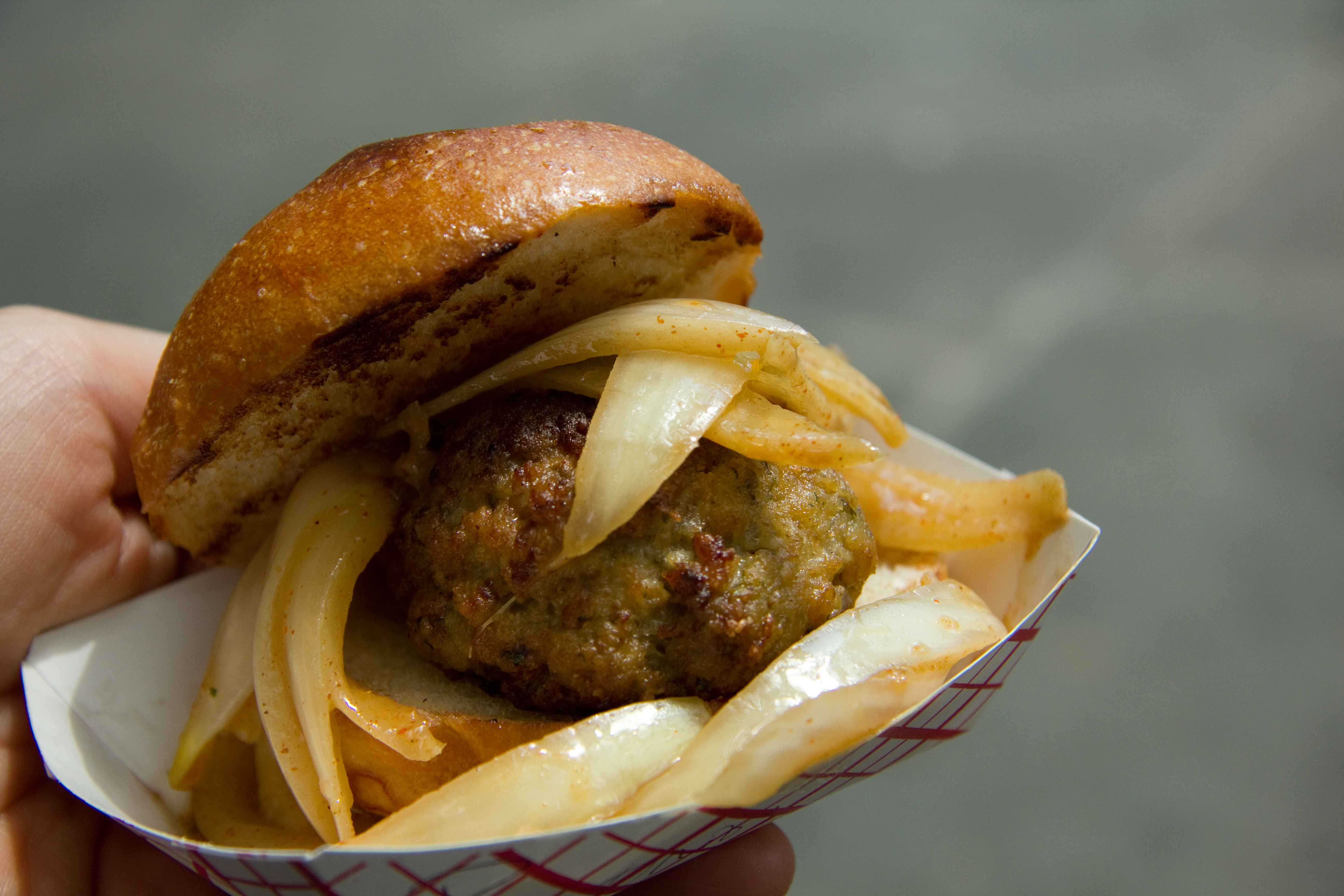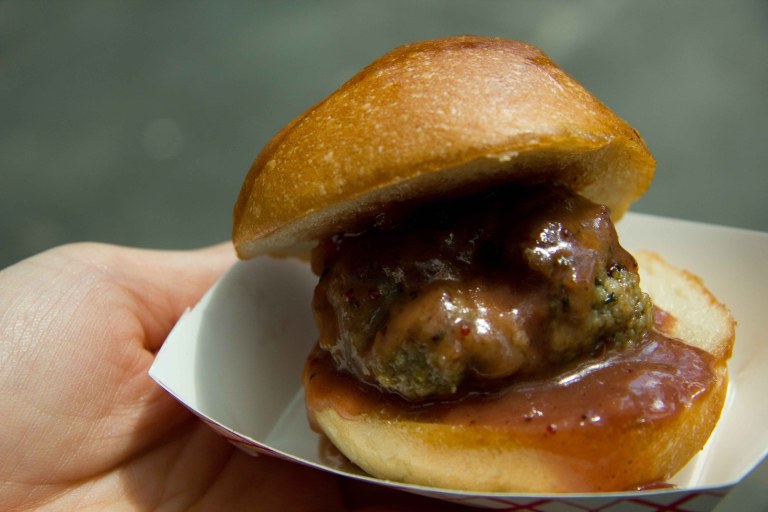Gotta start with a coffee!Bhut Jolokia (Ghost Pepper) is the hottest pepper on the planet. I picked one up, (who knows how I’ll use it) plus some watermelon pepper candies, which are a combination of sweet and painfully hot. Definitely a unique sensation.The Macaron Parlour sells candied bacon and maple macarons and of course I had to buy one. I felt it wasn’t bacon-y enough as I was eating it, but then I hit the piece of candied bacon in the center. I couldn’t eat a lot of these, but was happy to experience it.Luke’s Lobster was on my list, so I was excited to see it at the market. This tiny roll was expensive at $8, but the buttery roll and flavourful chunks of lobster made me forget about the price.Mighty Balls! Not yo mama’s balls serves many different kinds of meatballs, with your choice of topping. This was “not your average brown sauce” with a beef meatball.And the pork meatball with African onion. Both meatballs were yummy, and packed with flavour.