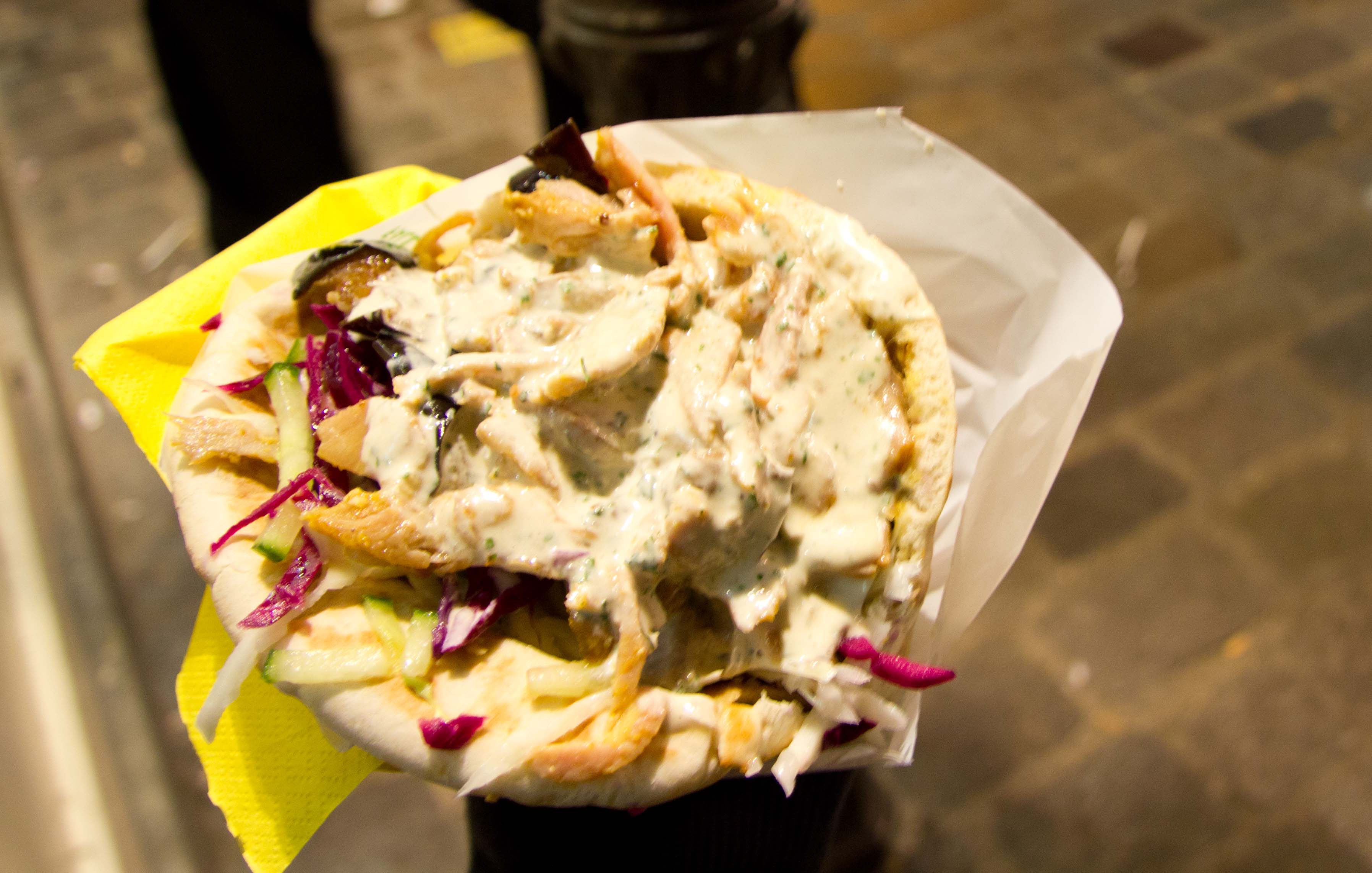 Thoroughly working up an appetite after walking around for a few hours but not wanting to have to sit down for a full meal, I didn’t have a plethora of ideas of what to eat on a Sunday evening. As luck would have it, as I was wandering back to the apartment I realized I was close to L’As du Fallafel, which is on many people’s “favourites” or “must do” lists. I was a bit uncertain to whether or not my stomach would hold for fallafel, but I thought I’d give it a chance.