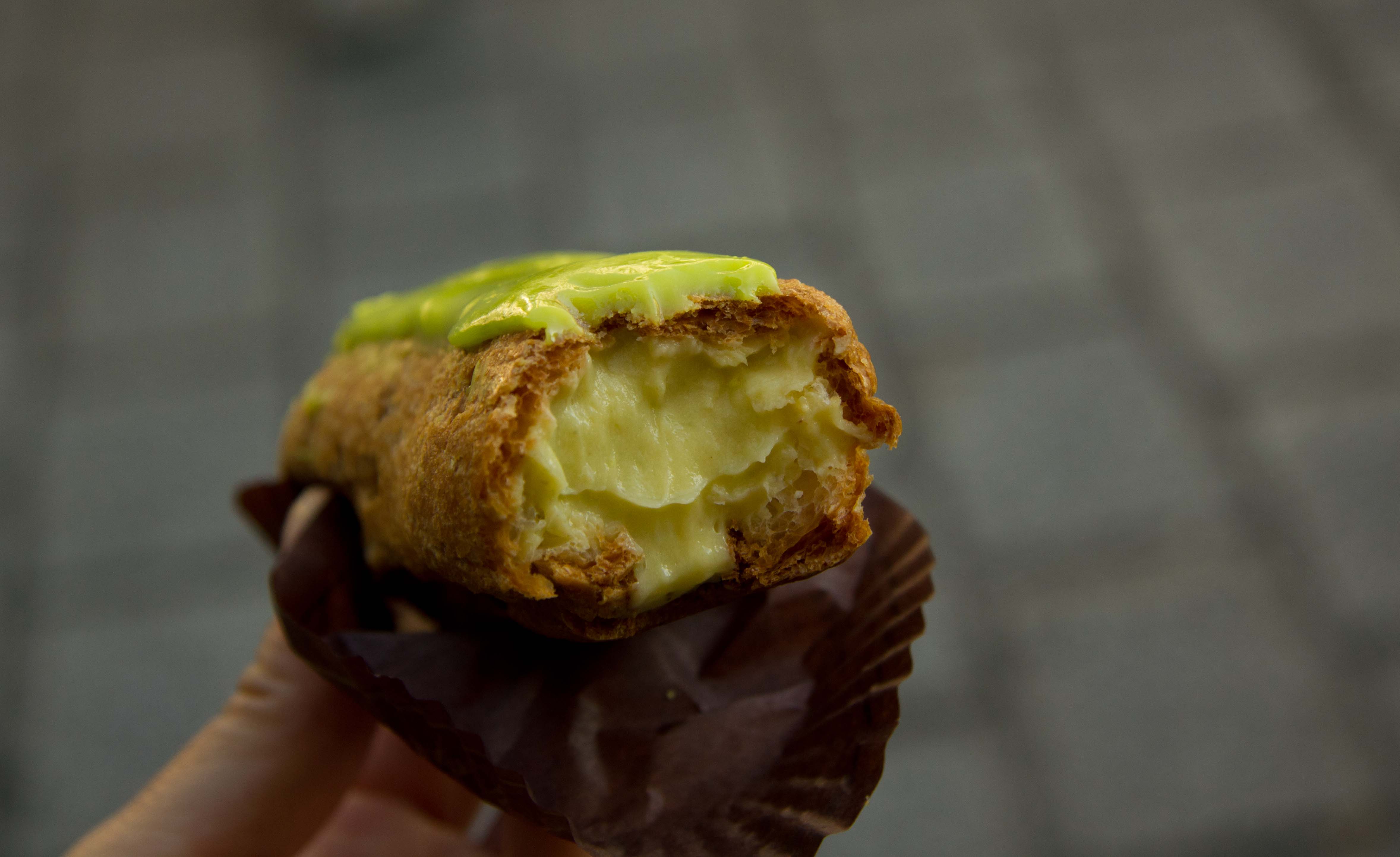 Éclairs!But these éclairs aren’t like the ones back home which are mostly dough and filled with bad cream. This was light and crispy, topped with a thick chocolate icing and filled with the most decadent chocolate filing.It was so good I barely made it out of the store before I wolfed the whole thing down.