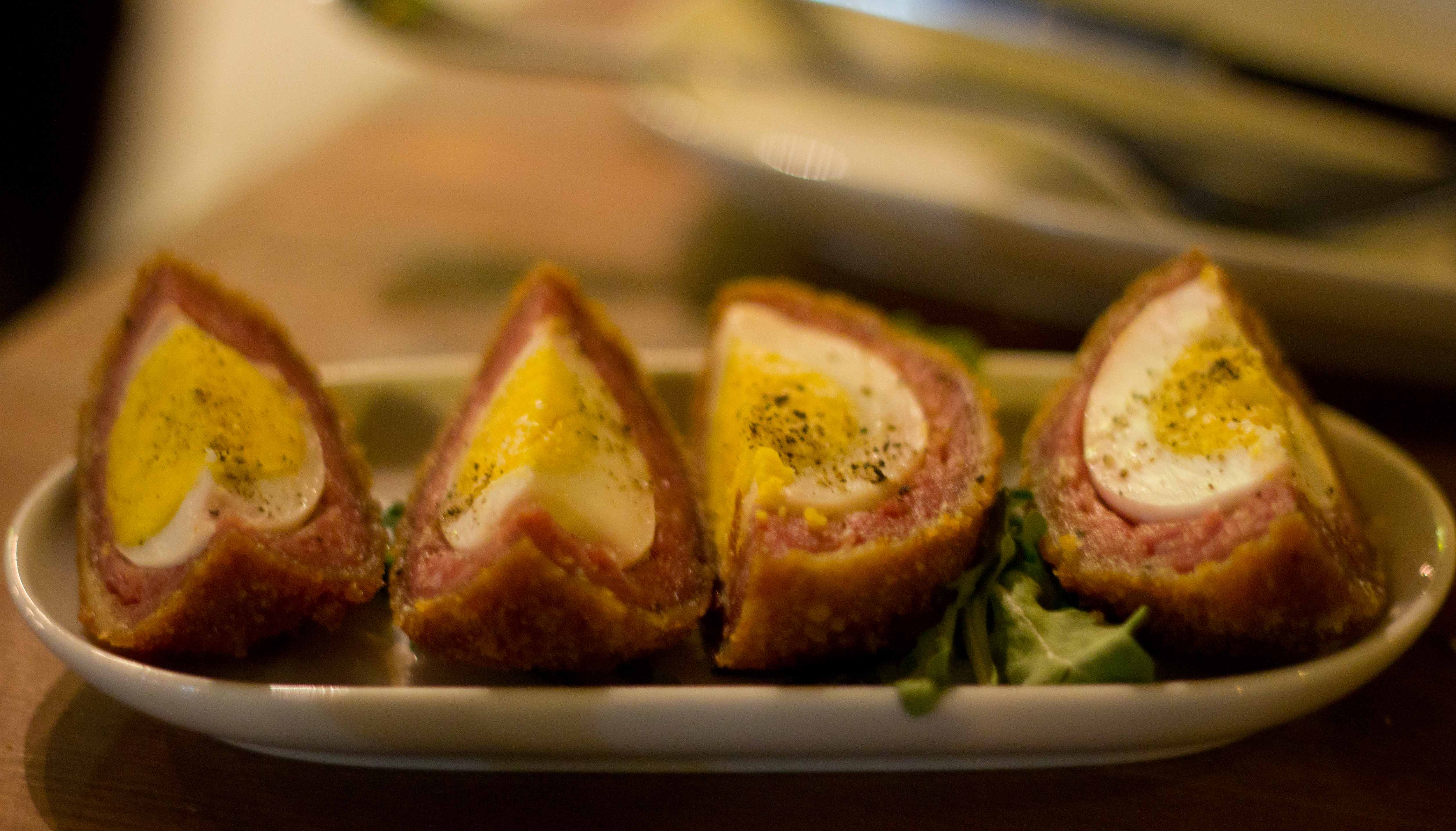 Pretzel – wasn’t as deliciously chewy as one I’d had in Bellingham earlier that week, but the zingy-sweet mustard made up for some of the pretzel’s weakness.Chicharron(cracklings) – The perfect beer snack in my opinion and I could have just eaten these all night. But I had to stop at 2 plates because the sharp fried edges started cutting up the roof of my mouth.Pork Rillette – I regretted ordering this as the stringy pork was tough and lacked seasoning.Scotch egg – If you see a scotch egg on the menu, don’t you have to order it? The breaded sausage outer casing was nicely seasoned and offered nice protection to the perfectly cooked egg inside.