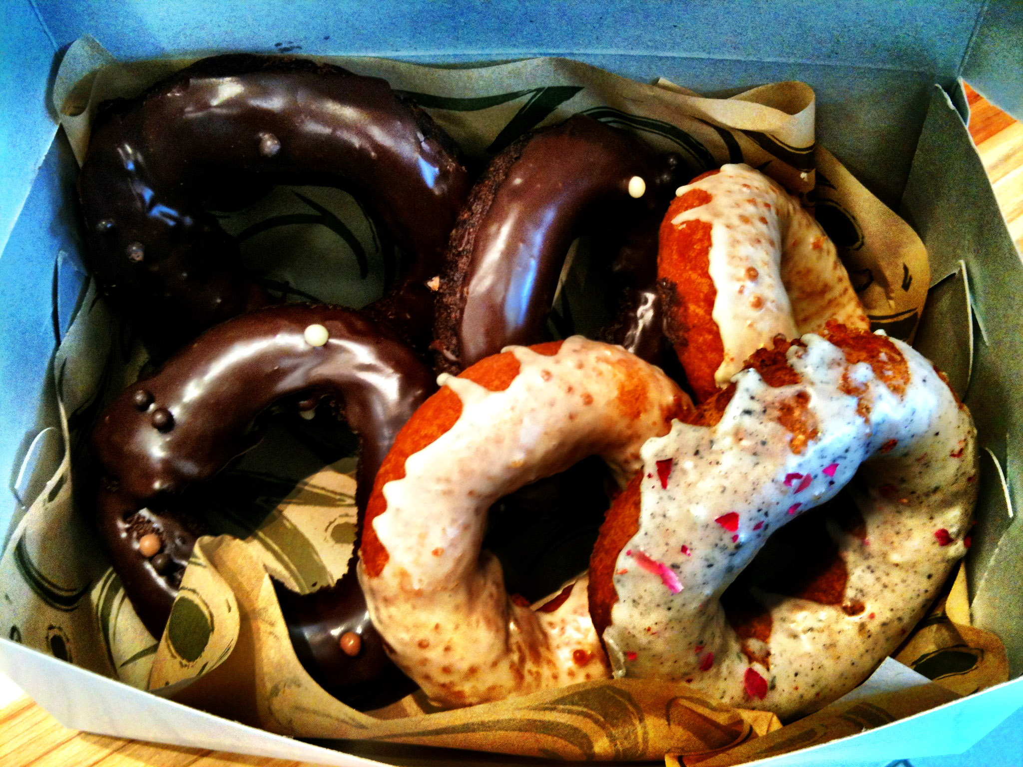 I wasn’t able to cut myself cold-turkey so I’ve been back, but only to buy 1 at a time now. I mentioned in the store that I love your donuts and because I don’t want to give them up, I have taken to 2-a-day workouts. This from someone who has been able to manage my portion control with little effort all of my life. You laughed because you thought I was joking. I was not. I did discover that day your version of a “healthier” donut, the baked vegan chocolate. I sneered a bit because it sounded like something so inferior to your other amazingly fried products. I was wrong, I think it’s the best of your best.