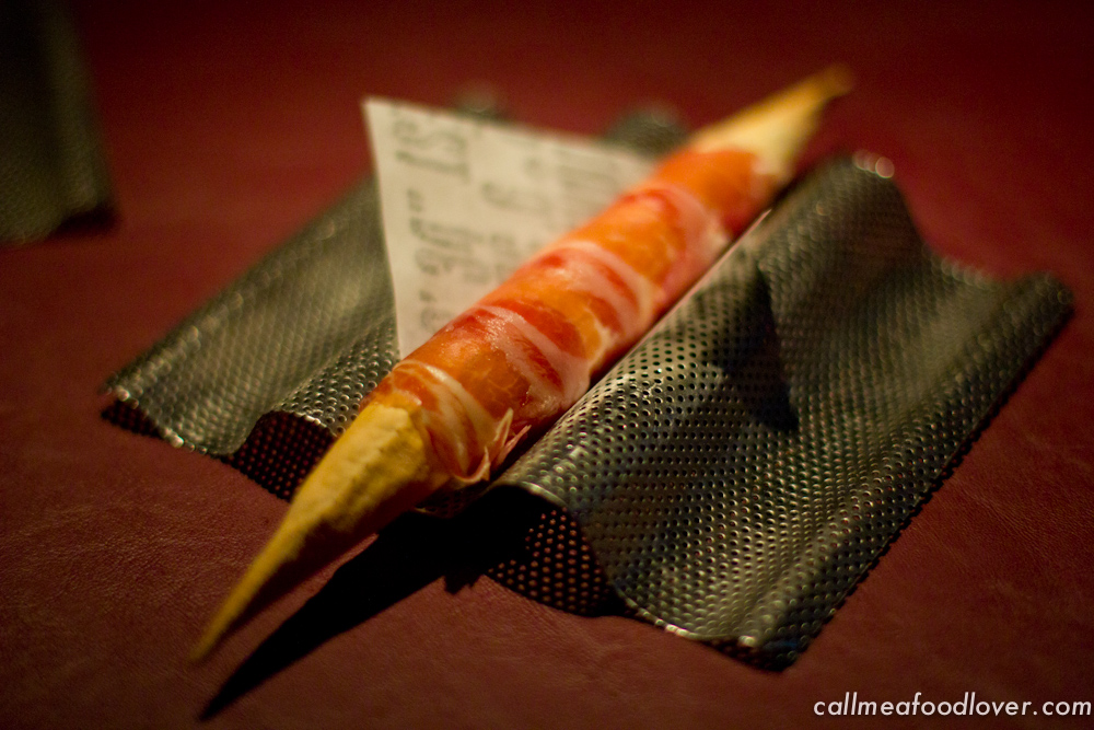 Beautiful Iberico jamon wrapped around a cracker like the airbag from TIckets.