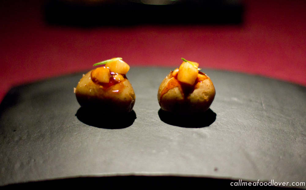 Seared foie sitting on top of a marshmallow. So untraditional, it took my mind a second to not be horrified and enjoy the soft sweetness that complimented the rich foie gras.