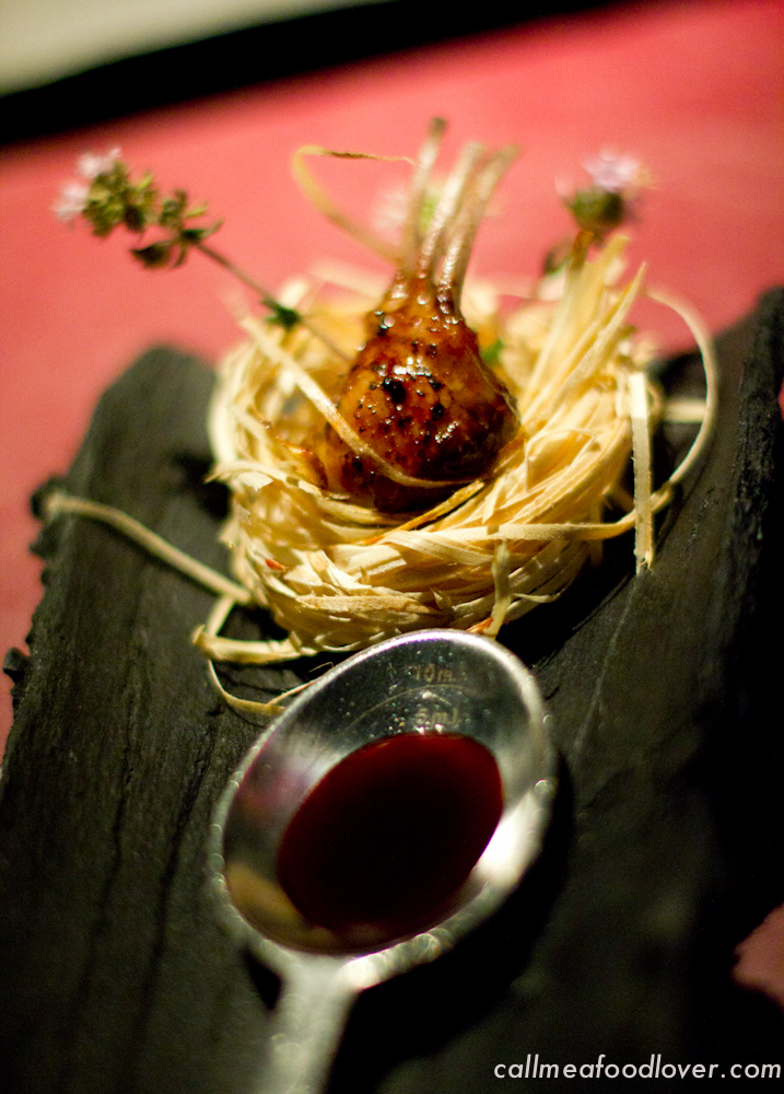 The “blood” was beet consomme and I nibbled away on this until there was nothing left on the tiny bones. I know I keep saying things are my favourite, but this was tops for all of the savoury dishes.