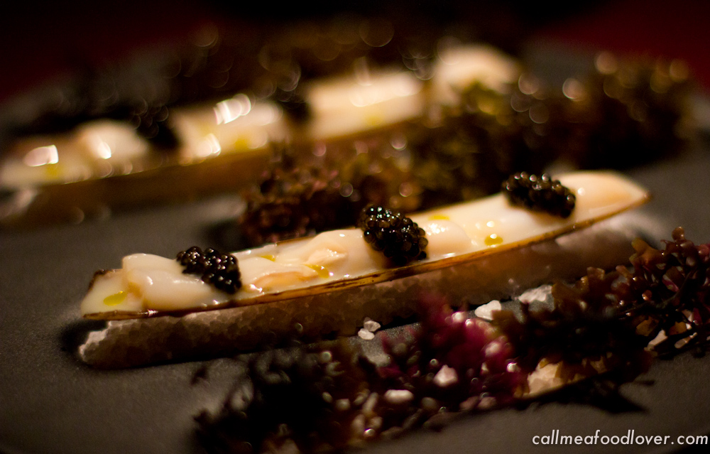 Barely cooked and gorgeous, these razor clams reminded me of tender abalone.