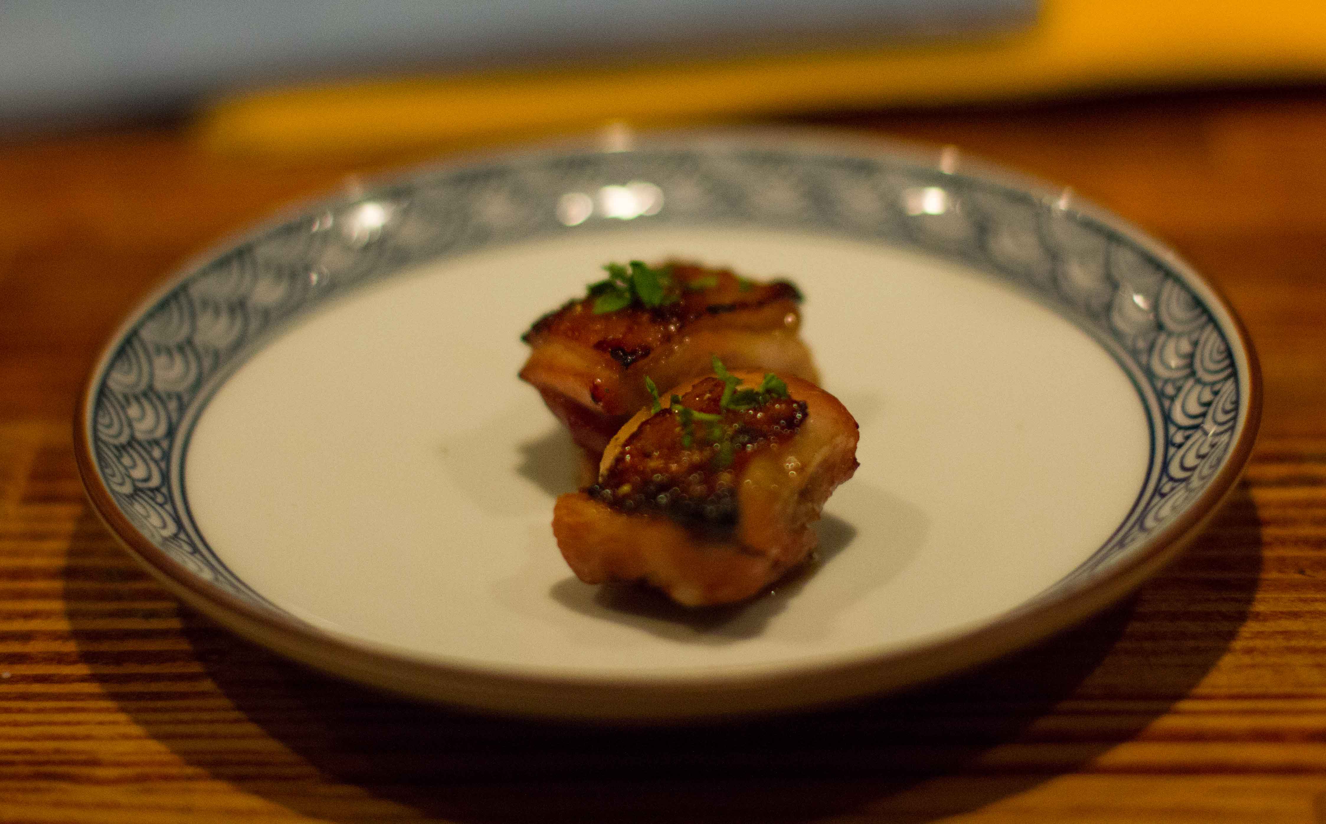 Inside Bird Land, I was seated at the counter and because I didn’t want to have to put any thought into my food, I ordered the ¥6,000 set. Most of what I knew of this restaurant was from a segment from Mind of a Chef where Chang sits at the counter and eats the same meal as I order. As I sat and watched Chef Wada-san work over his small charcoal grill, I knew I was in for a treat and was sad that I didn’t have anyone to share it with.