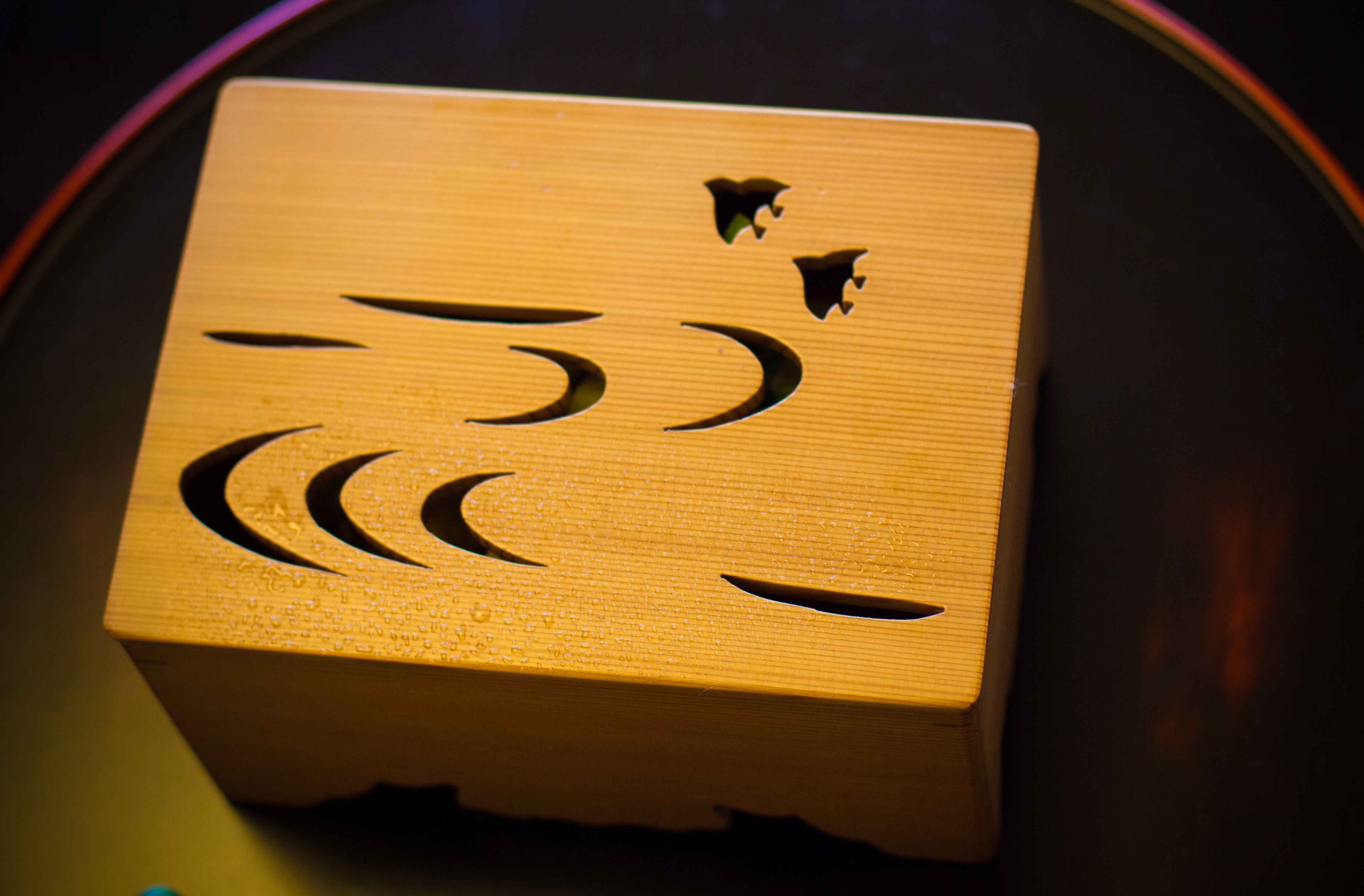 Hassun course sets the seasonal theme. Every component has a connection to nature, so the box is sprayed with water to make it look natural.