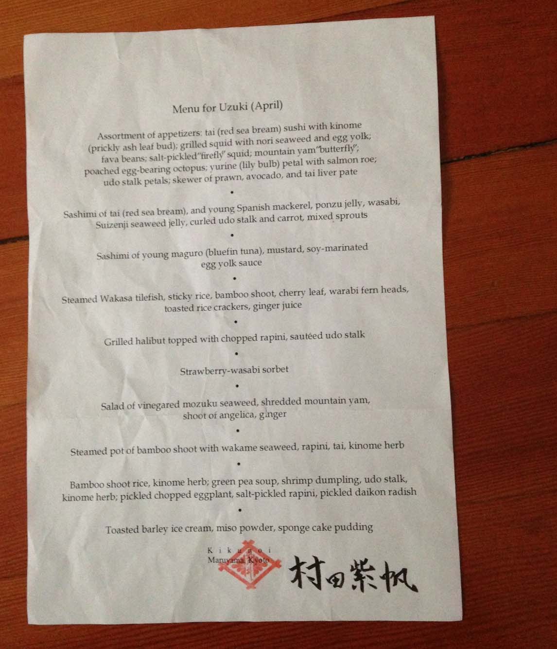 We were given menus for our meal, but my mom said that the English translations were a bit “poor” in their description. My mom asked Murata’s daughter to sign my menu, which she did in beautiful calligraphy.