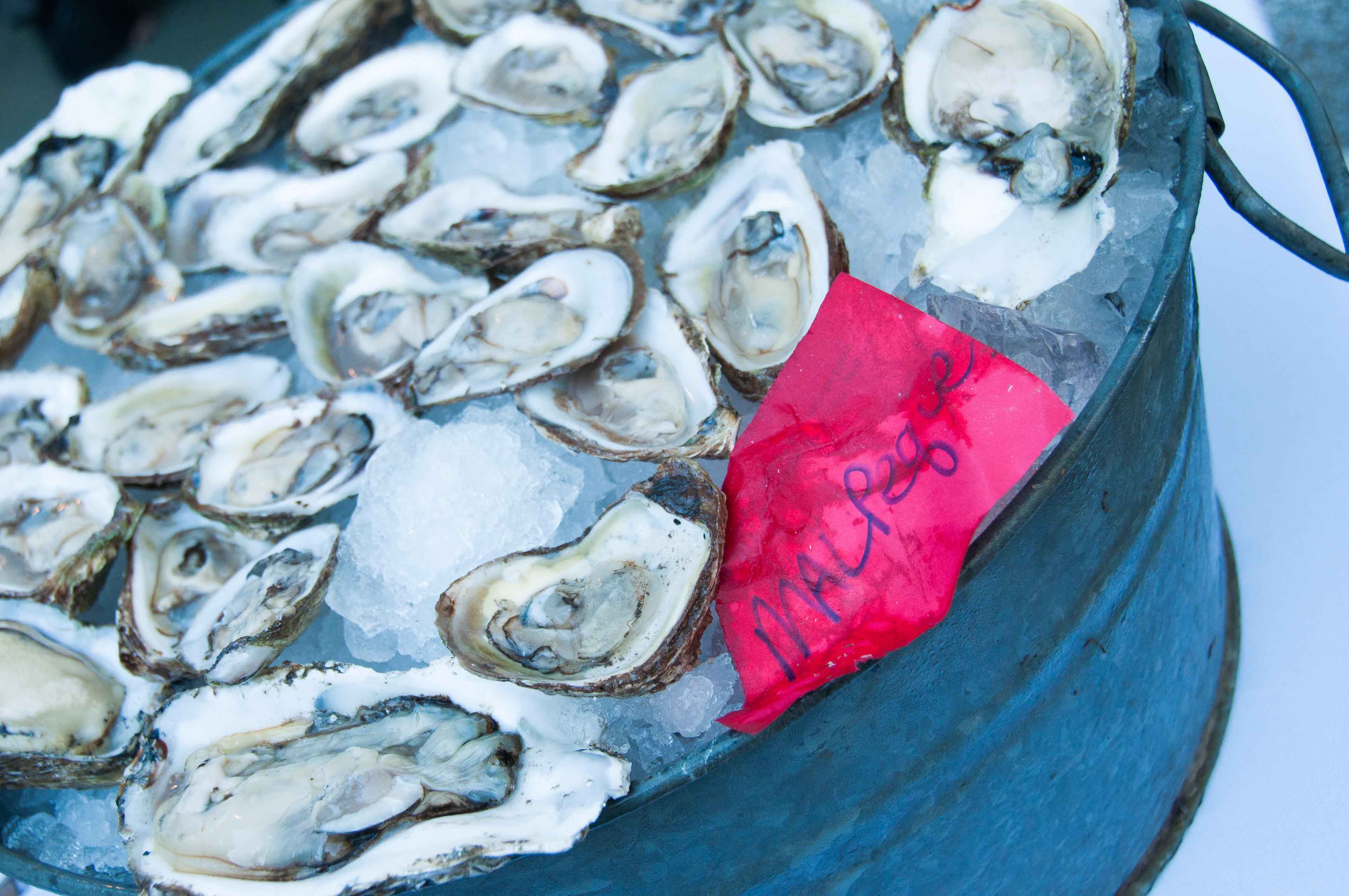 I noticed some people hovering beside another table and I wandered over to see a huge tub of freshly shucked oysters.