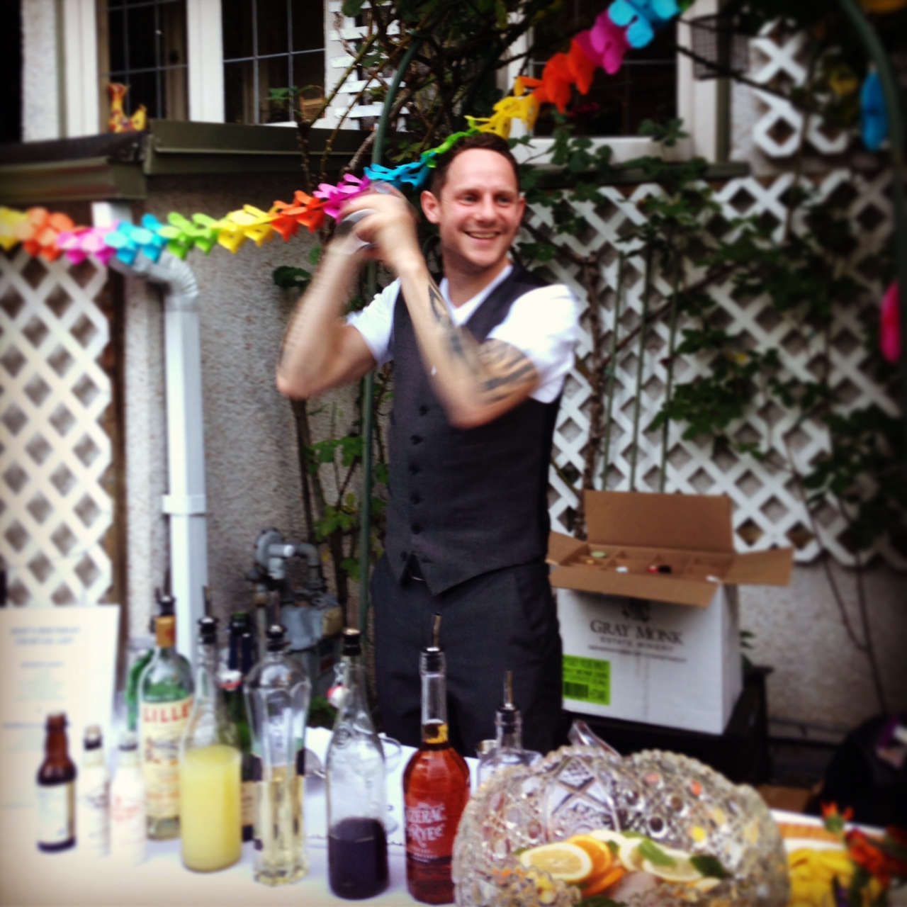 I was shocked at the group of people who had gathered to celebrate my birthday with me. I made my way around the garden for hugs to everyone, when someone caught my eye. I couldn’t believe that Ben had gotten our friend Brian Grant from Pourhouse to tend the bar for the evening.