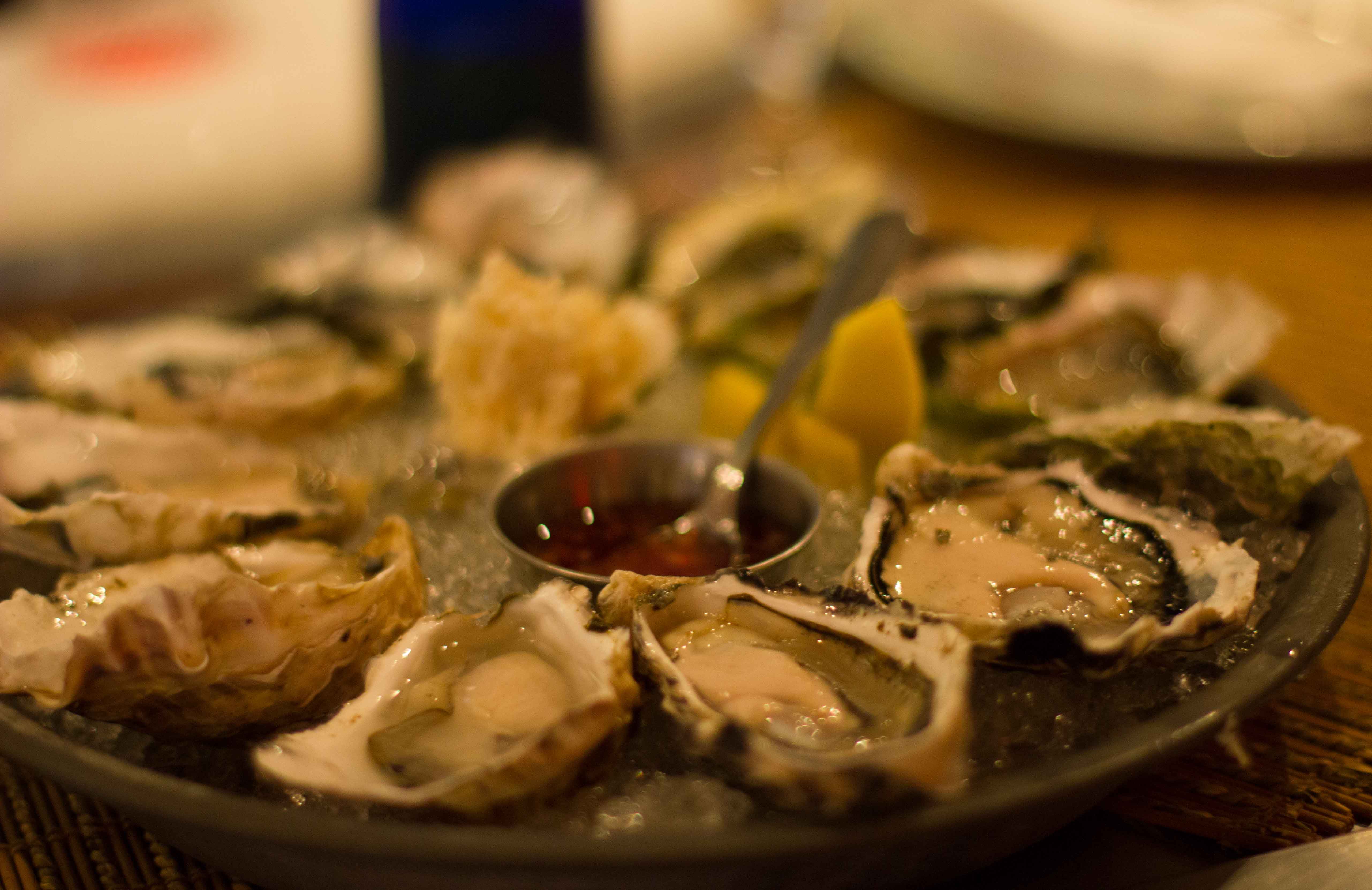 The bar advertises a Happy Hour special of a dozen oysters for $9.95, but I was informed that due to the season, they weren’t able to offer that. Instead, I ordered them at their regular price of 6 for $9.95. I have to admit that even at regular price, it’s still a good deal.