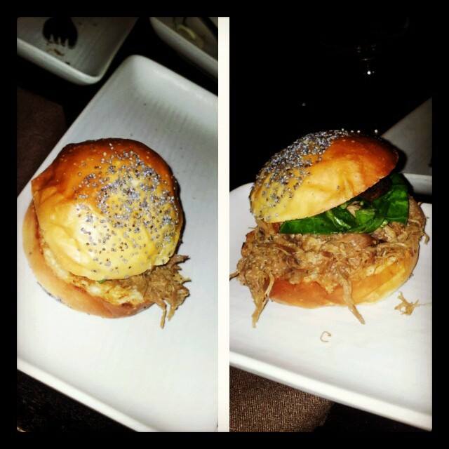 My worst mistake of the evening was that I let socializing get the best of me and I stopped taking photos of the food coming out. We had brisket sandwiches, spoons of tuna tartare and fries that satiated our hunger. I enjoyed all the bites, but the most memorable for all were the Chinatown Duck Sliders. Thankfully my teammate Michelle sent me this photo of the sliders that I didn’t get.