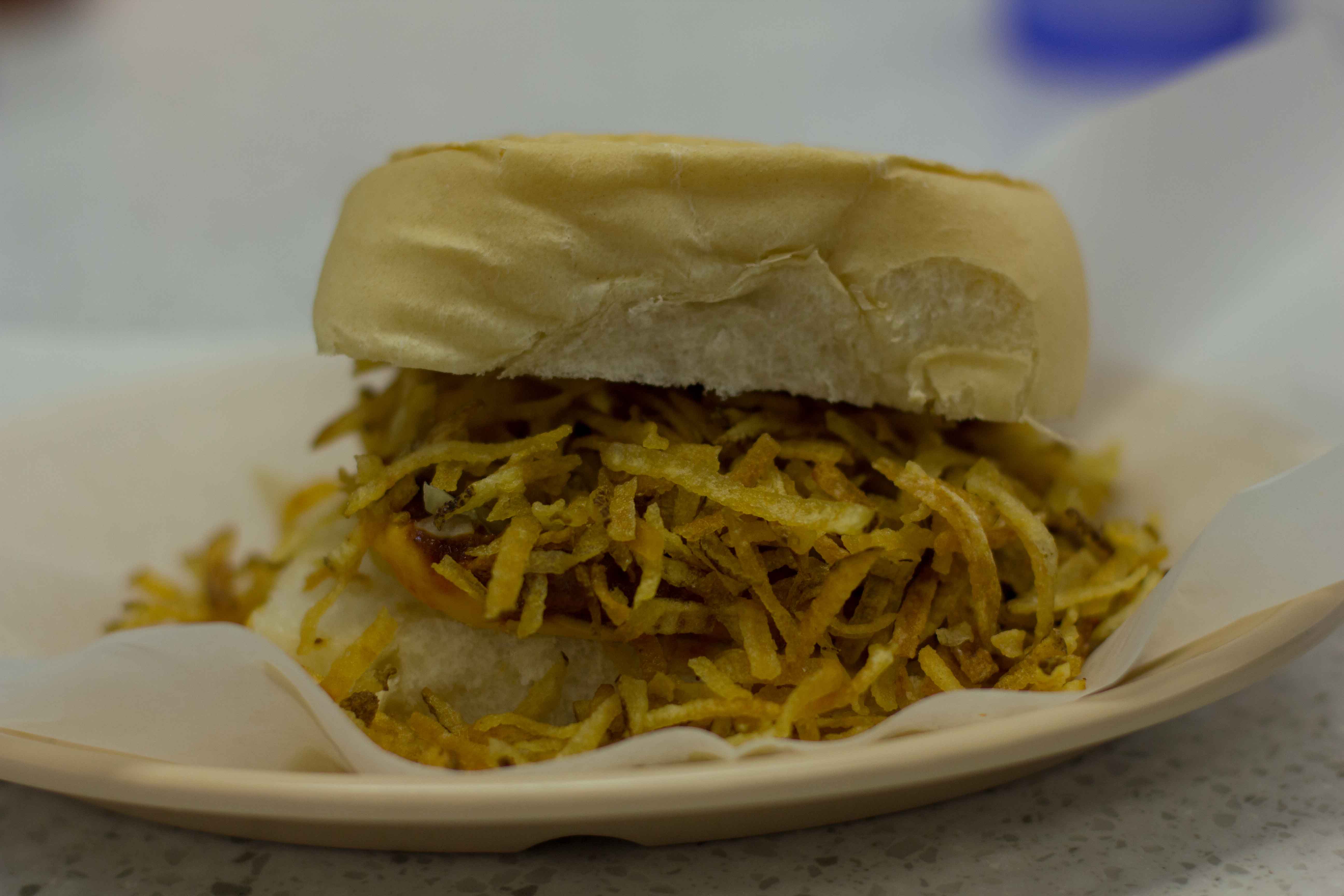 When I started researching Cuban food, I learned about Fritas Cubana, (the Cuban hamburger). A frita is a hamburger made of a mix of ground beef and chorizo topped with raw onions and fried shoe string potatoes. Everything about this sounded amazing so it was first on my list of things to do in Miami.