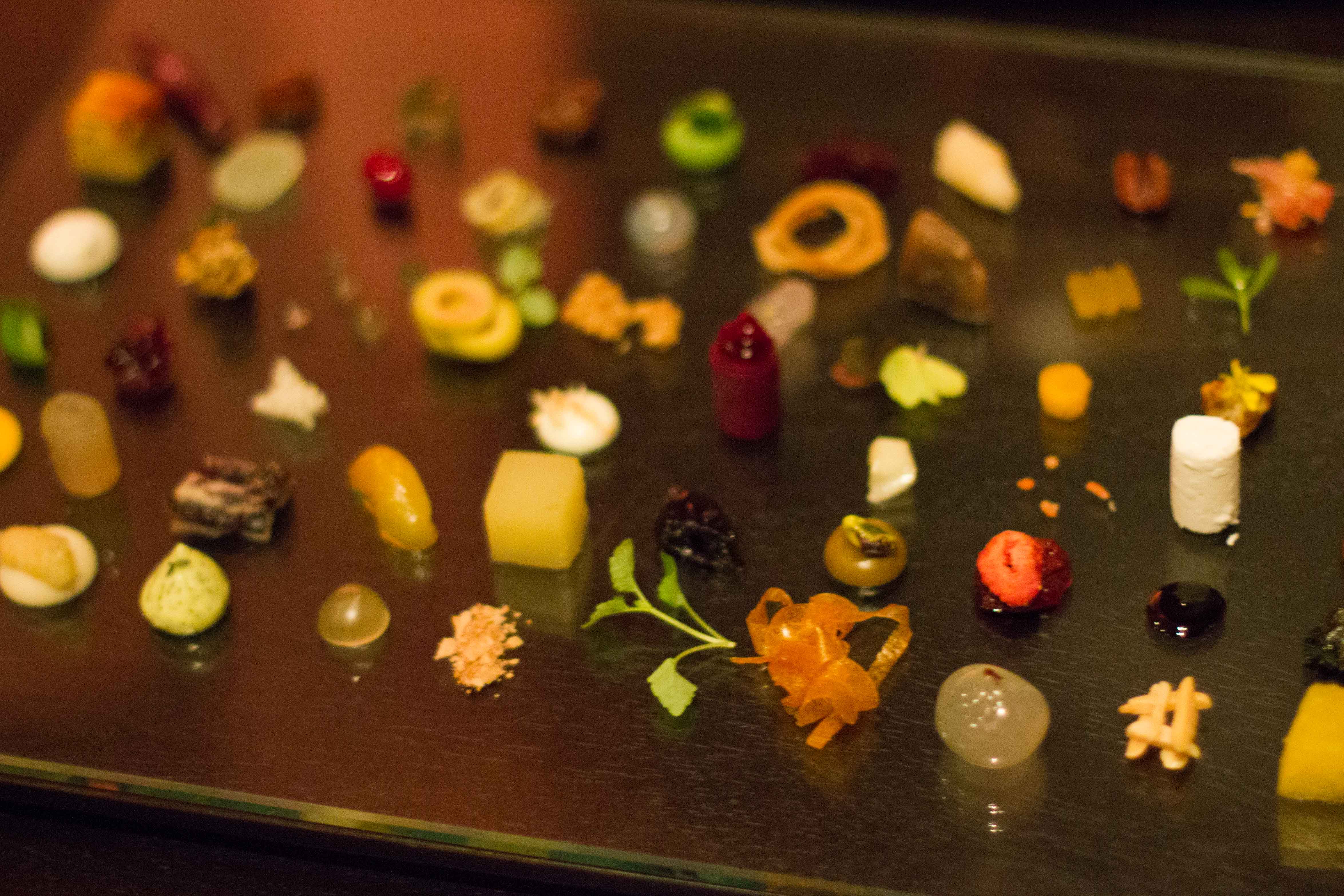 The last course at Alinea is quite extraordinary. I had known it was coming, but still couldn’t help but feel incredibly excited in its execution. To prepare for this dessert, the table is cleared and a large silicone piece of fabric is draped over the top. Ingredients are left in small bowls at the edge of the table. One of the chef’s then comes up to the table and starts their final work of art. Literally.