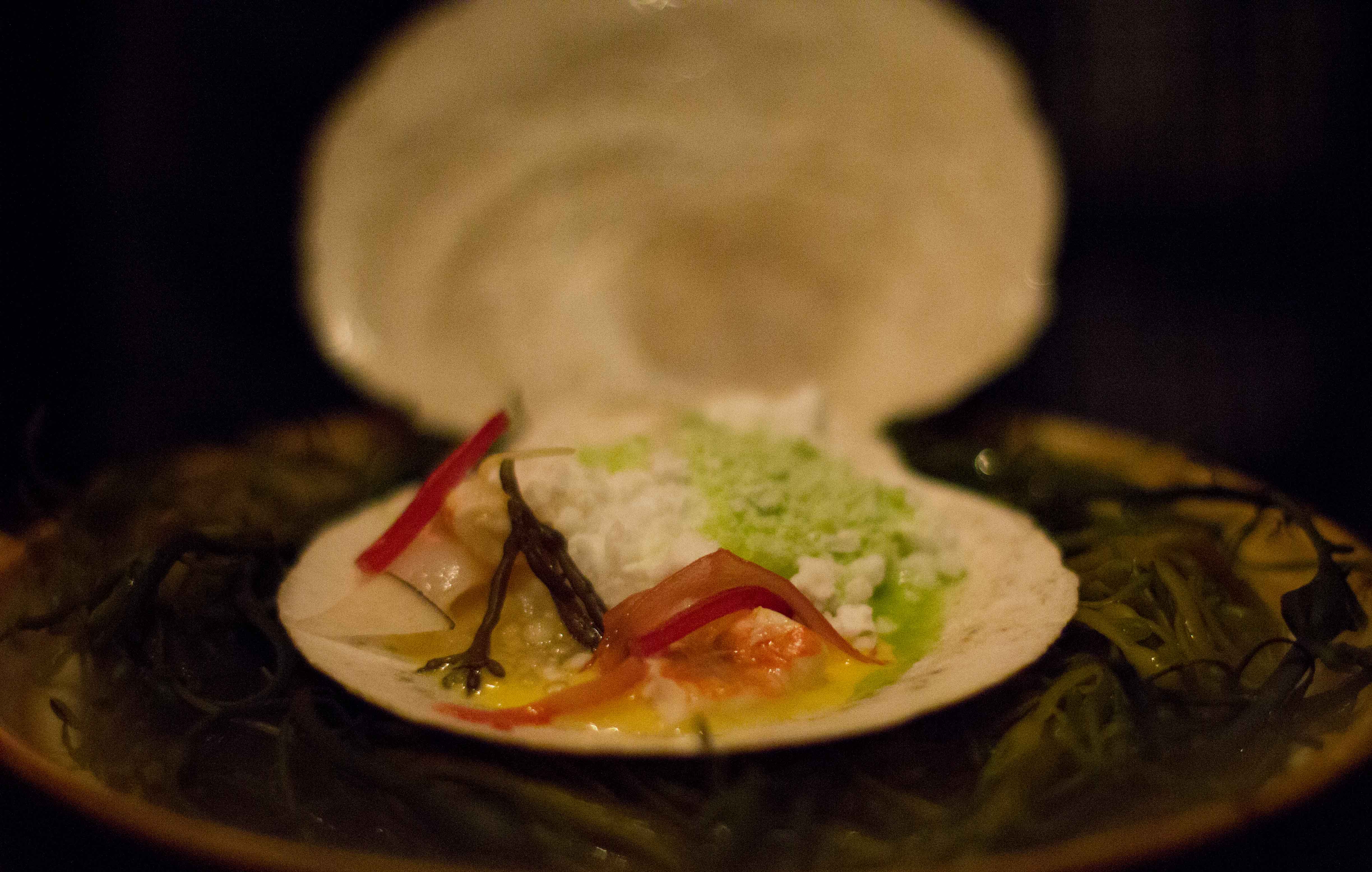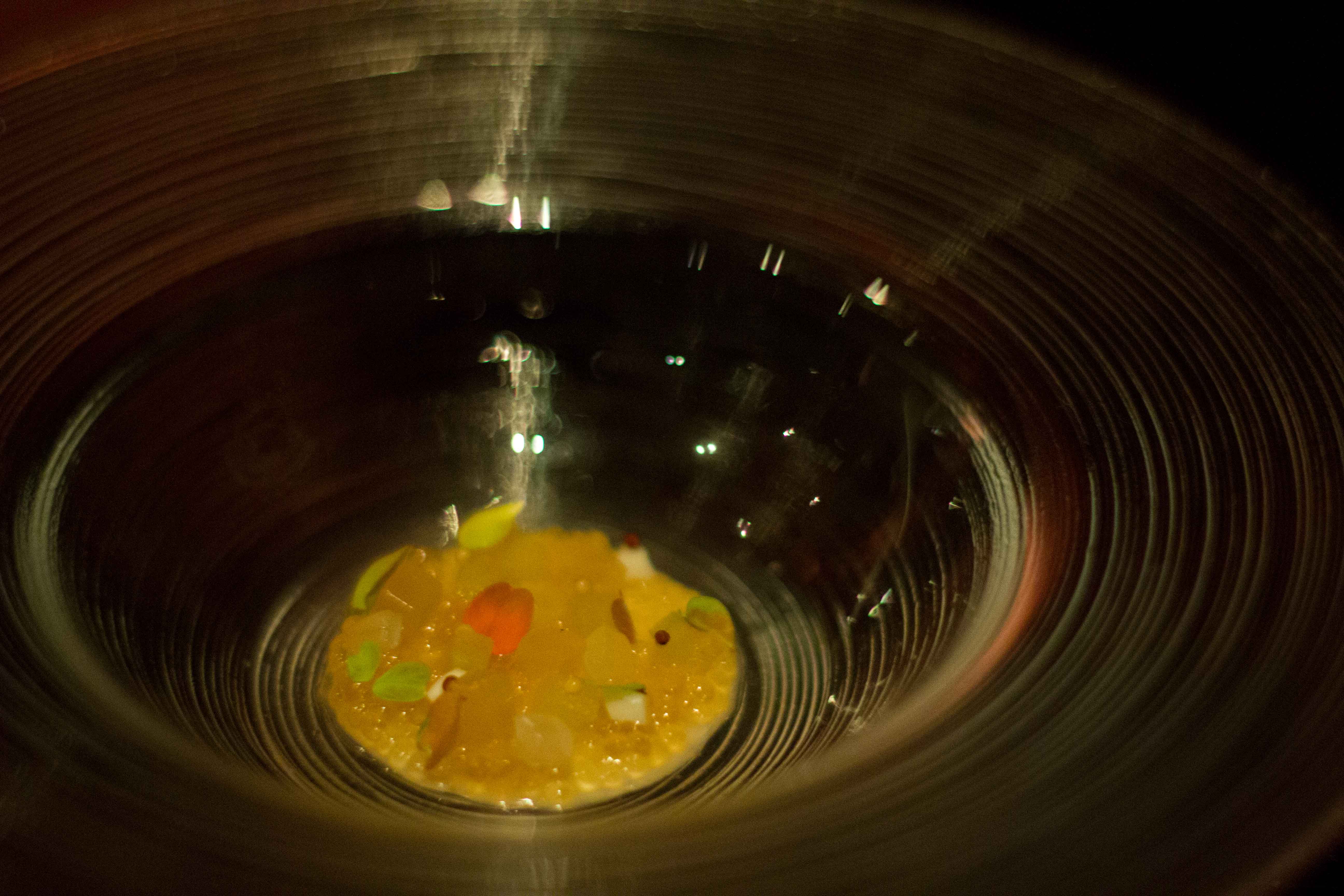 Scallop – citrus aroma, 14 textures. The citrus aroma was lemongrass-y “smoke” wafting underneath the seaweed. The contrasts of  textures and temperatures of this dish showed a confidence of skill that I’ve never experienced before.