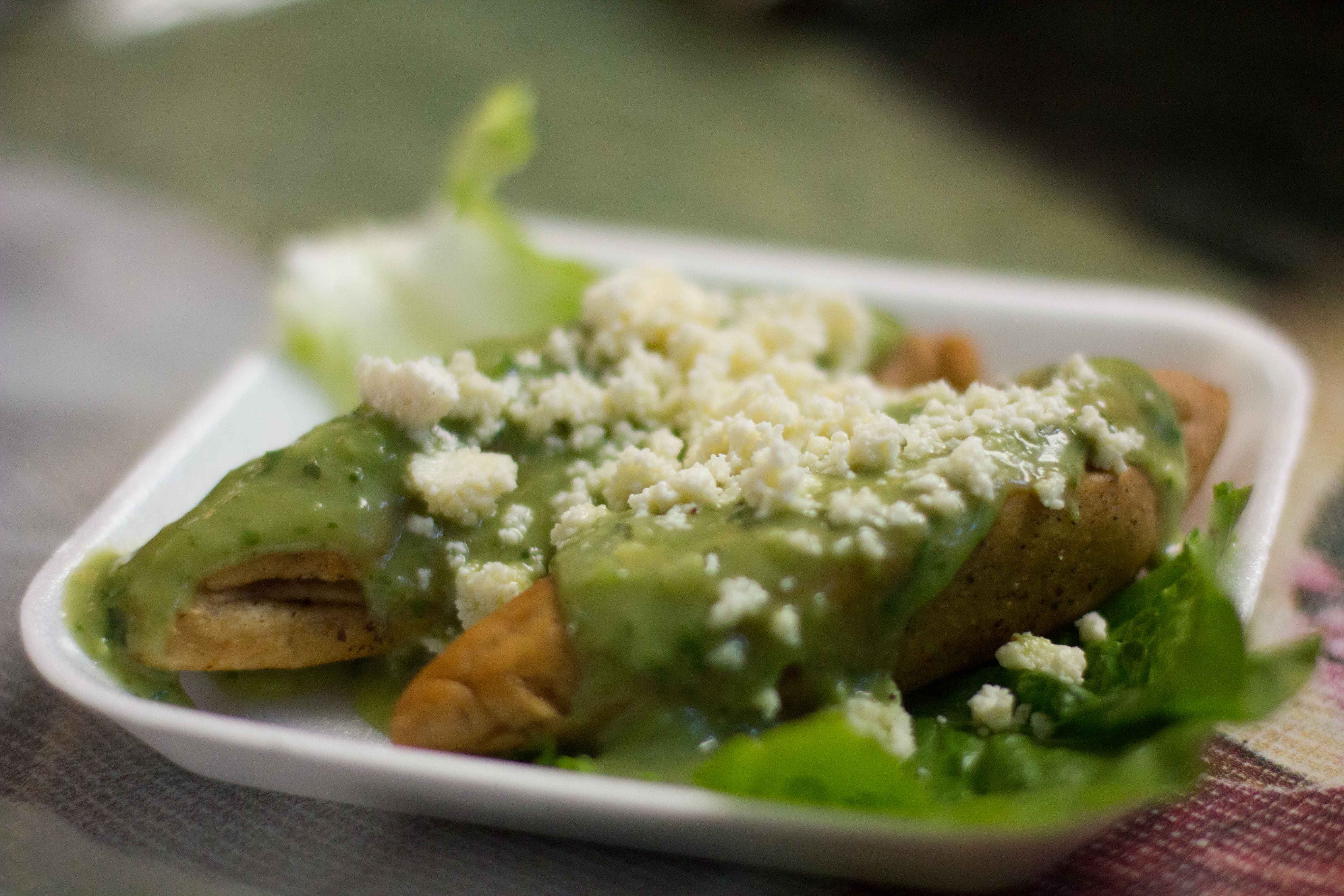 Memelitas are made with a thick ball of masa, stuffed with a mixture of potatoes, chorizo and onion and then fried. We were just looking to try a bite and ordered 2, but were called something that’s closely translated as “wimps” by this woman and made to order 2 each.