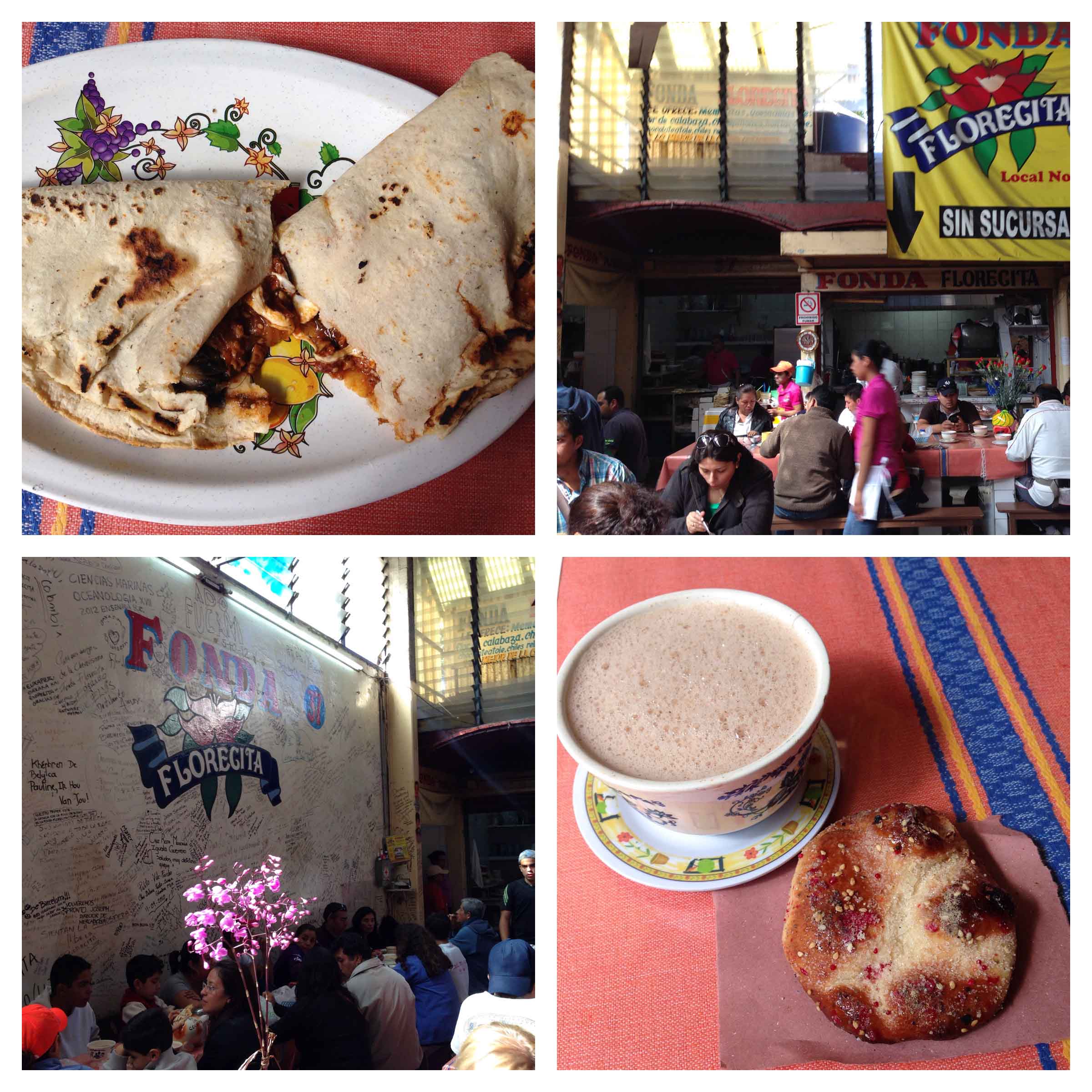 La Merced is my “local” market in Oaxaca and Sunday breakfast at Fonda Florecita has become a must on my list. I’d never really liked Oaxacan hot chocolate before, but on this trip it really grew on me, and became something I ordered. Tom found a great bread vendor in the market that baked in a wood burning oven (very rare we have come to discover) and we sat dipping our bread in our drinks until my breakfast quesadilla was delivered.