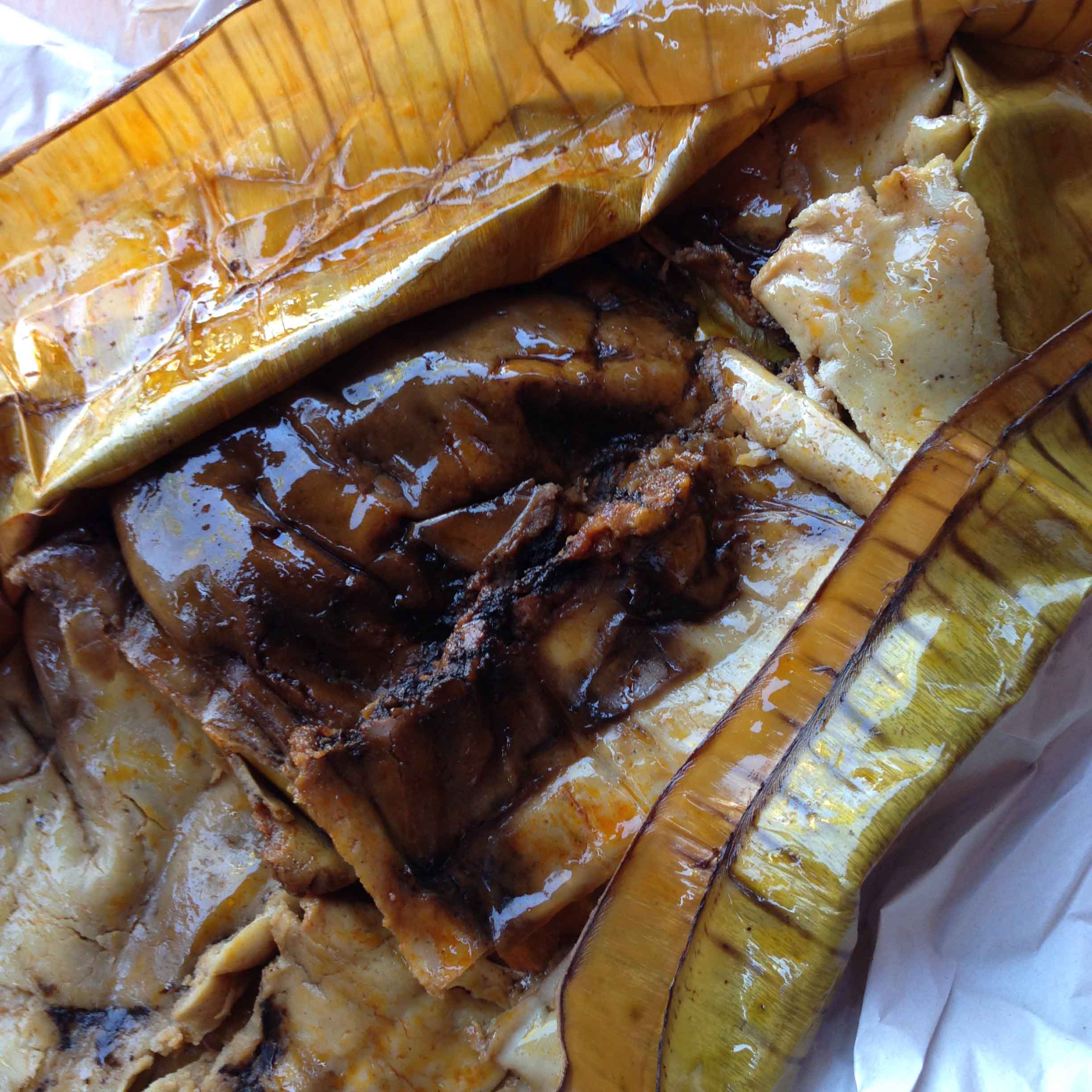 Tamal de cambray from a stand run by the restaurant Zandunga – soft and sweet, filled with meat, fruit and nuts.