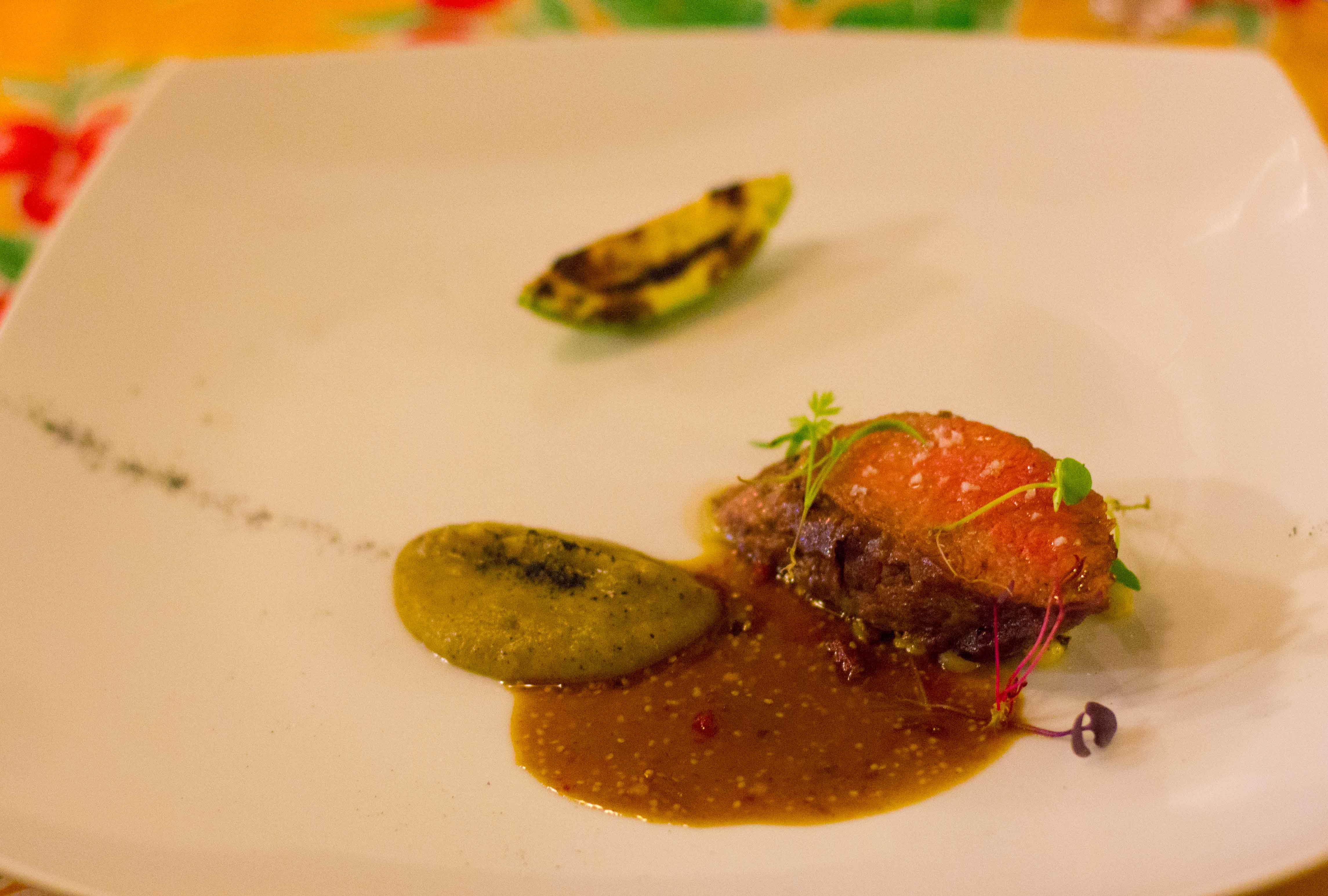 I smiled to myself as we were presented with our first taste of the evening. Shredded meat on cut up pieces of toasted sandwich bread. It was something so simple that you’d more likely see it on a table in a family home rather than being served by a top chef in Mexico. But this beginning to our wonderful meal speaks to Chef Rodolfo’s character. He is quietly confident about his food, which carries through an honesty that I found missing in so many of the meals I had throughout the year. With one bite of my delicious little open-faced sandwich of what was presumably leftovers from Thanksgiving dinner a few days before, I let myself relax into what I knew would be a thoughtful and wonderful meal.