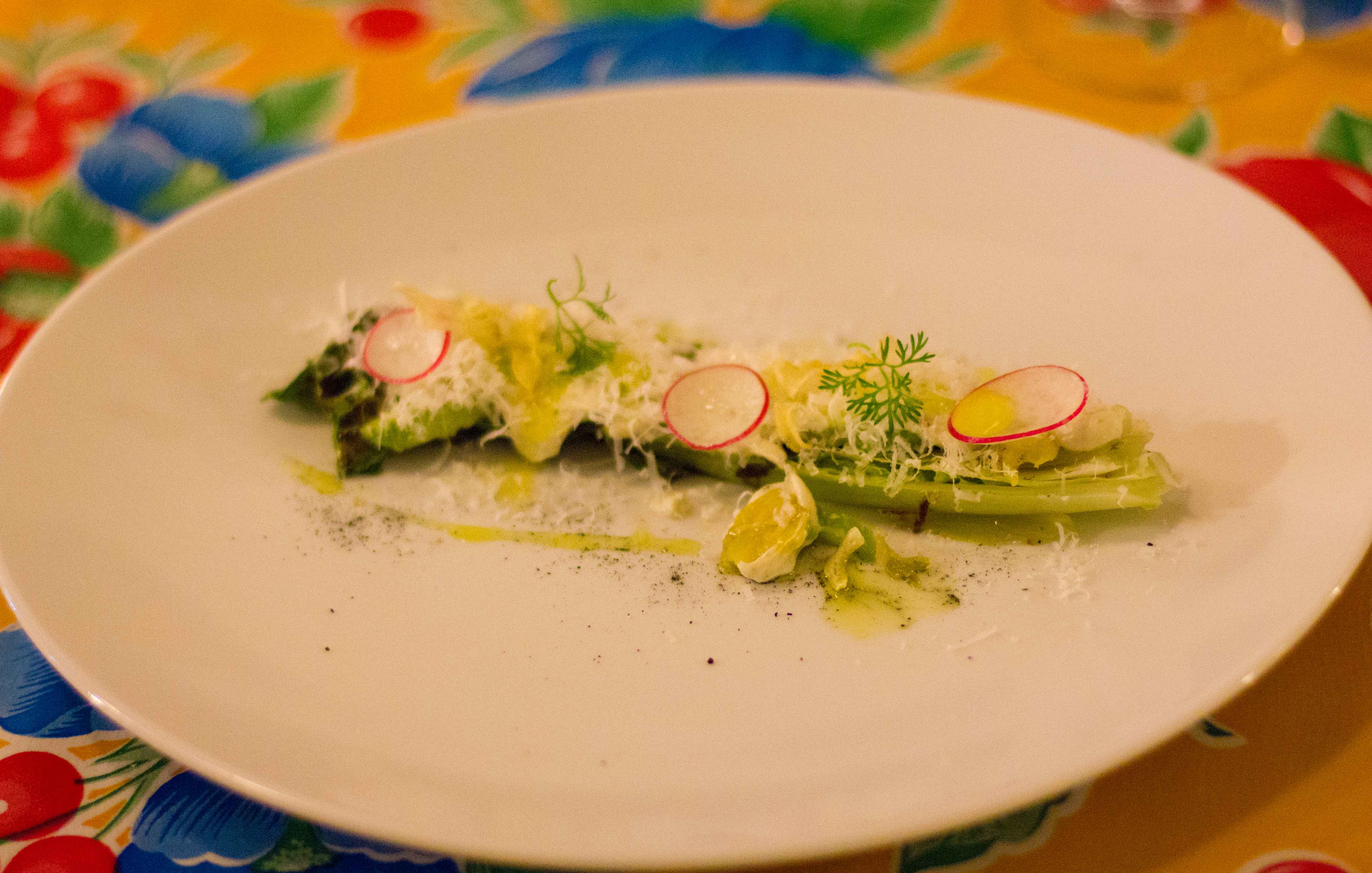When we arrived at Origen, the table next to the kitchen was set for us. It was the same table we’d spent eating at a few days before, and although part of me wanted to dine in Origen’s charming dining room one last time, (before Rodolfo opened his new space upstairs), I knew there would be no better place to watch a meal being specially created for me (and the rest of my group) than beside the kitchen itself.