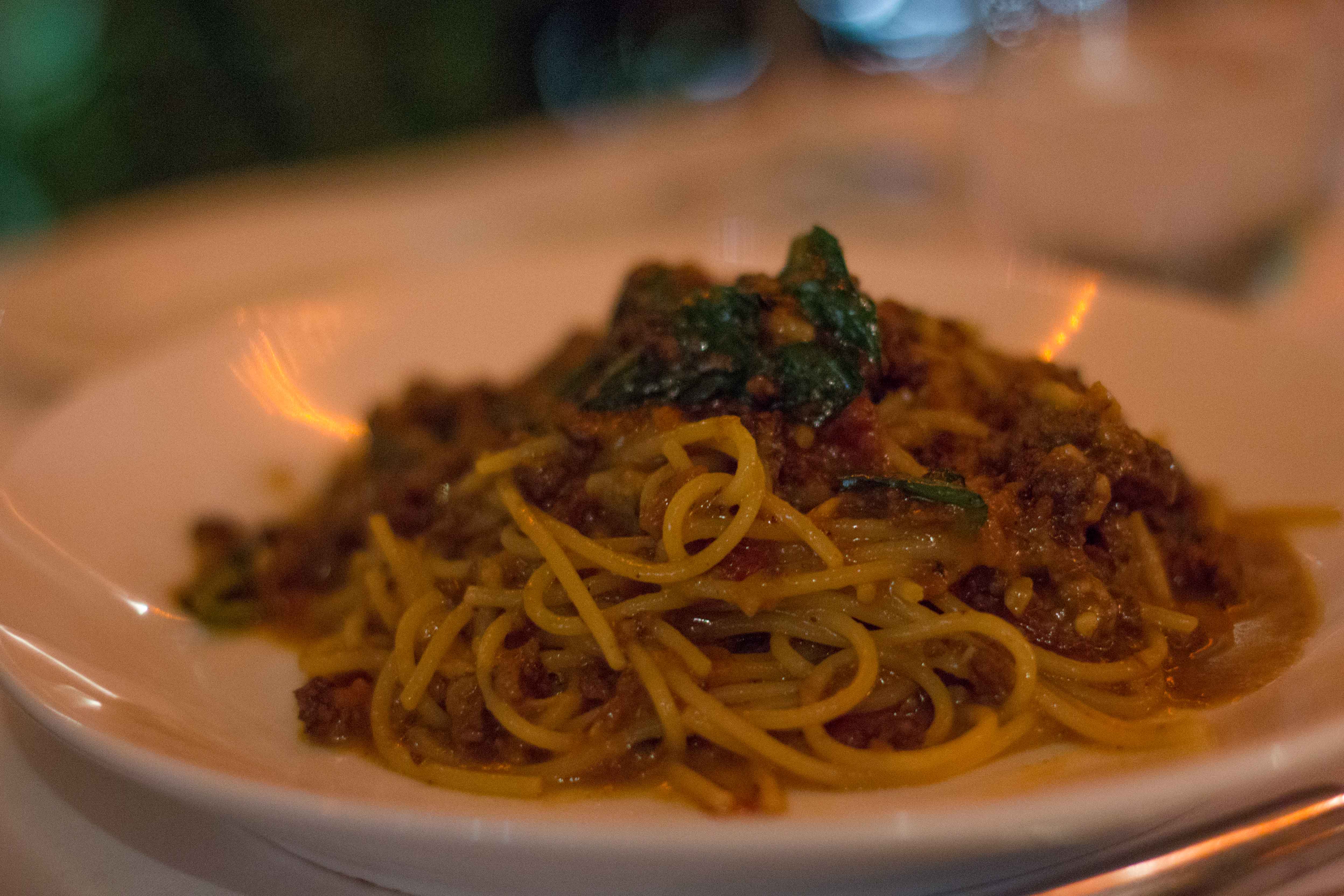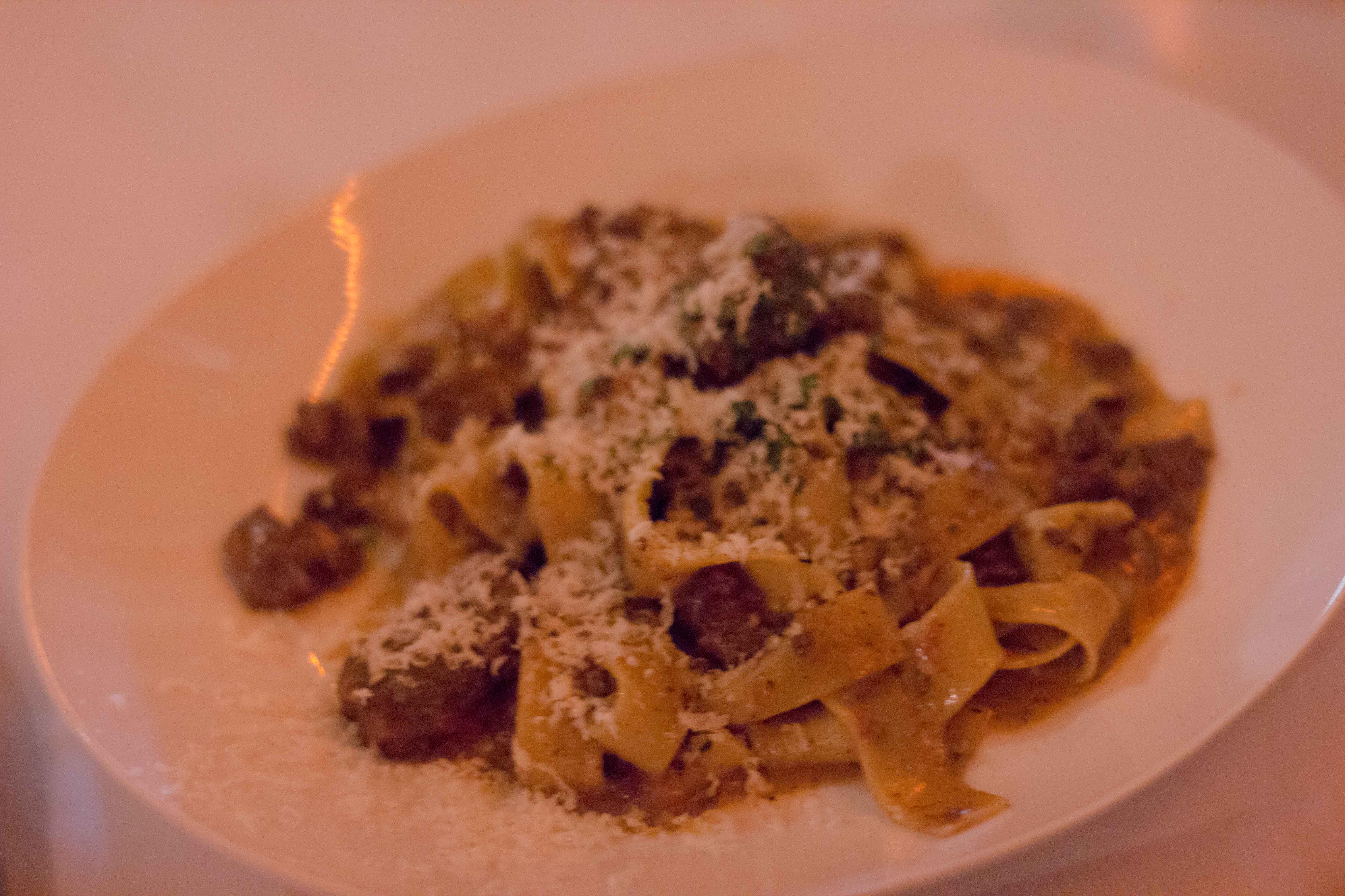 Bolognese alla “Classica” – Fresh pappardelle pasta in meat sauce (beef, pork, chicken and foie grass) in a red wine sauce.