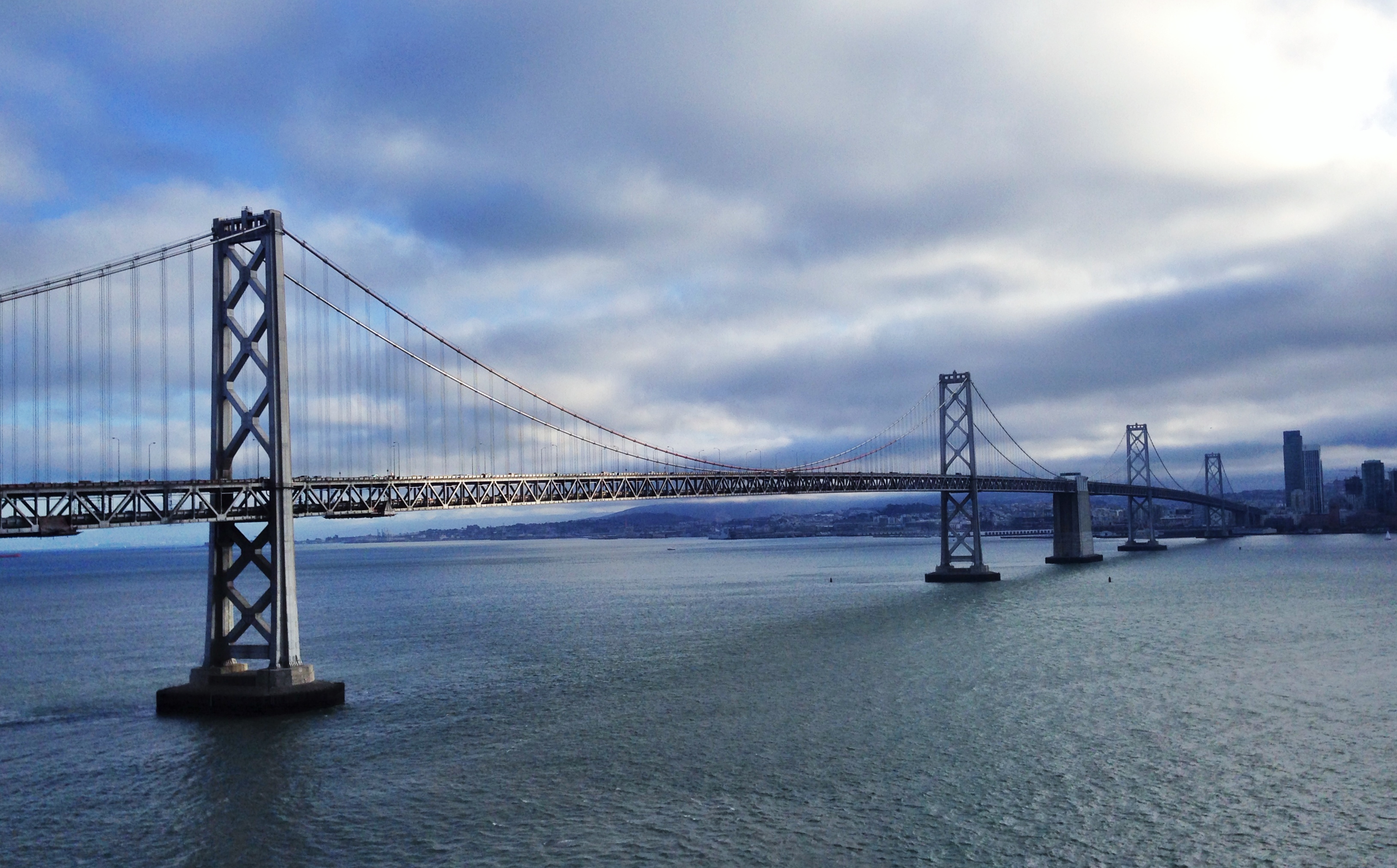 Four races completed and getting on one of the last buses of the day to take me back to my hotel, I was thoroughly pooped. I had thoughts of catching a cat nap on the bus, but my team is notorious for posting ridiculous sleeping photos of anyone who is caught with their eyes closed. I’m happy I stayed awake though, because as the bus pulled away from Treasure Island, I got a glorious glimpse of the Bay Bridge.