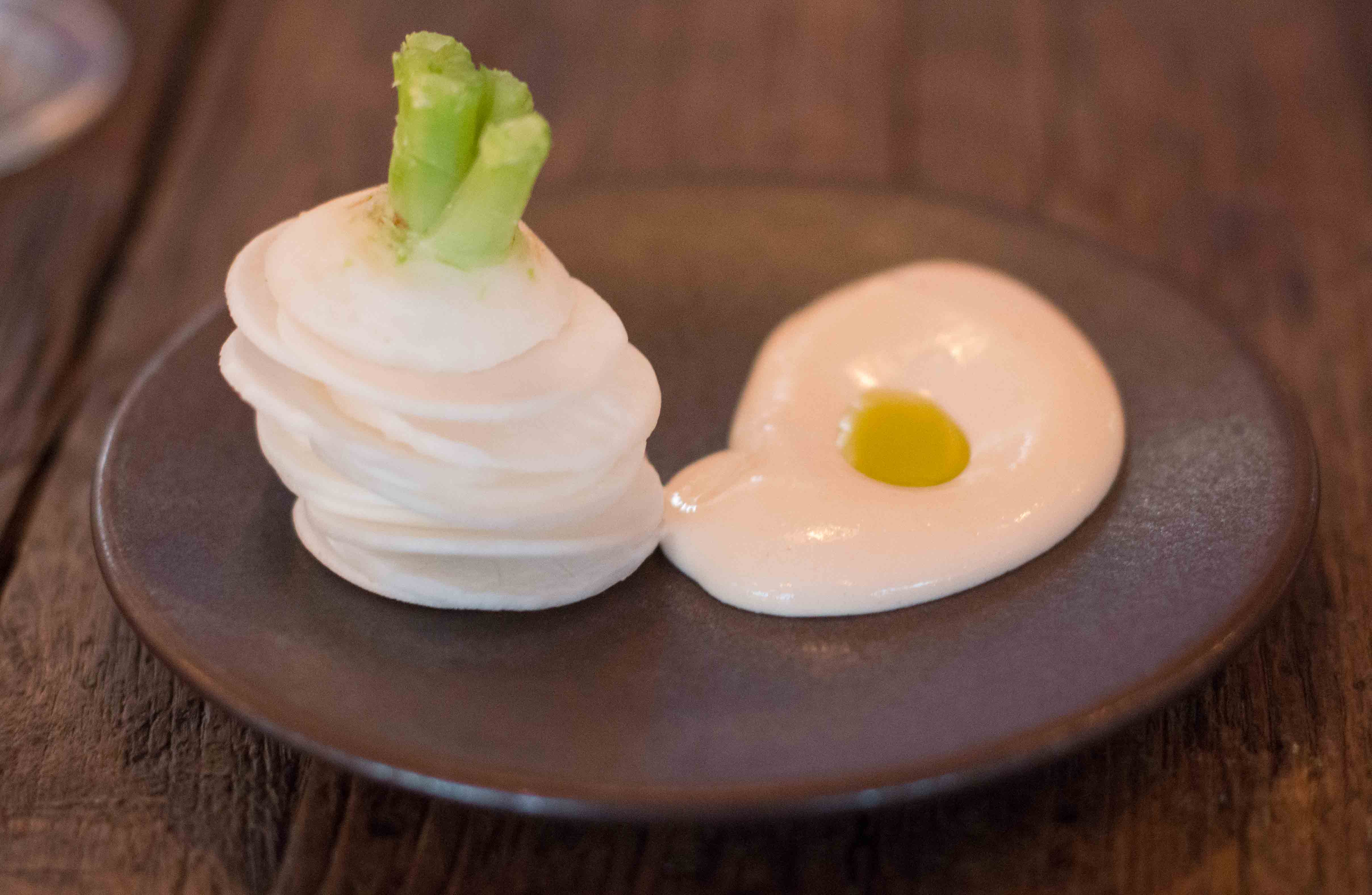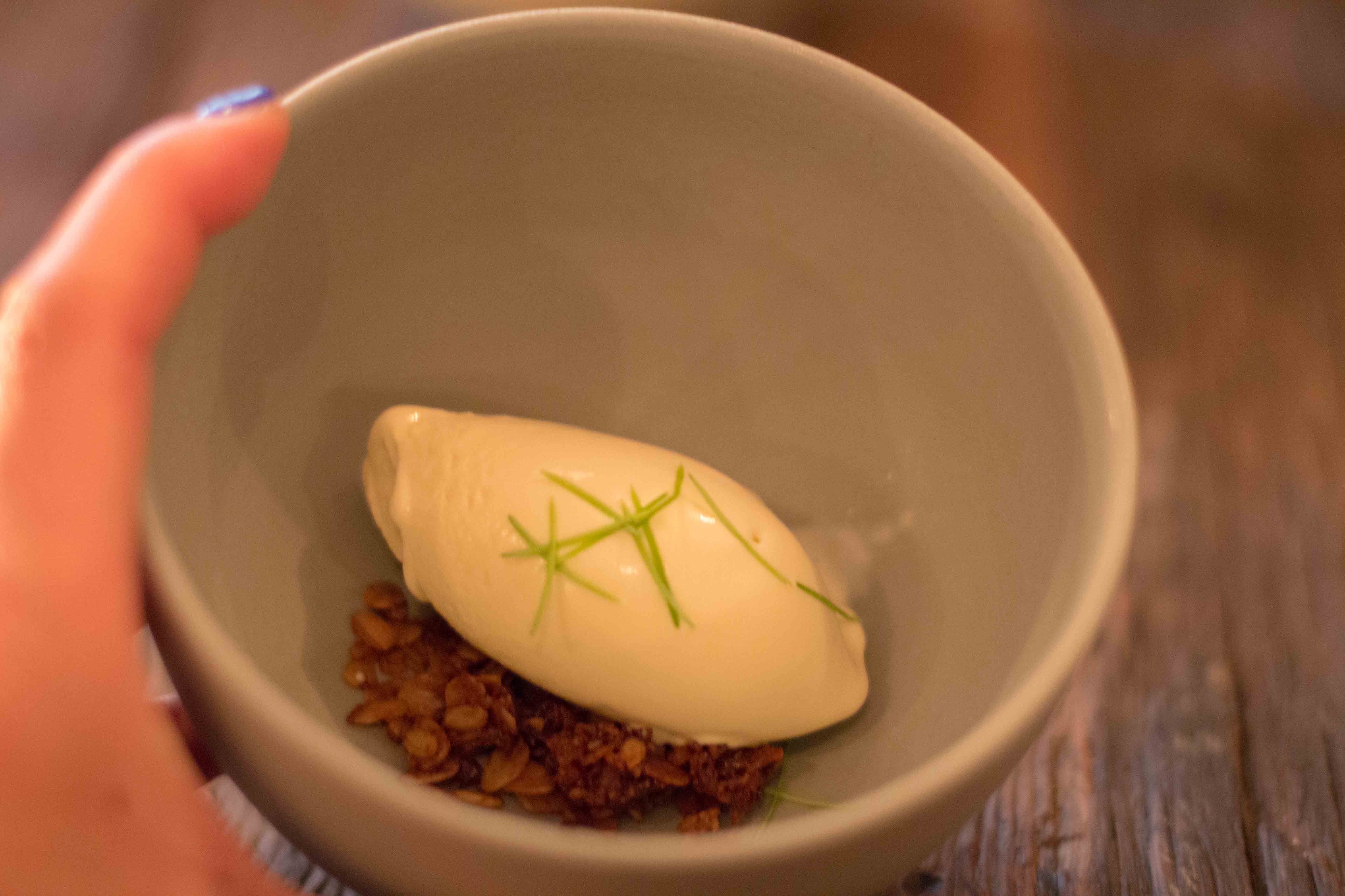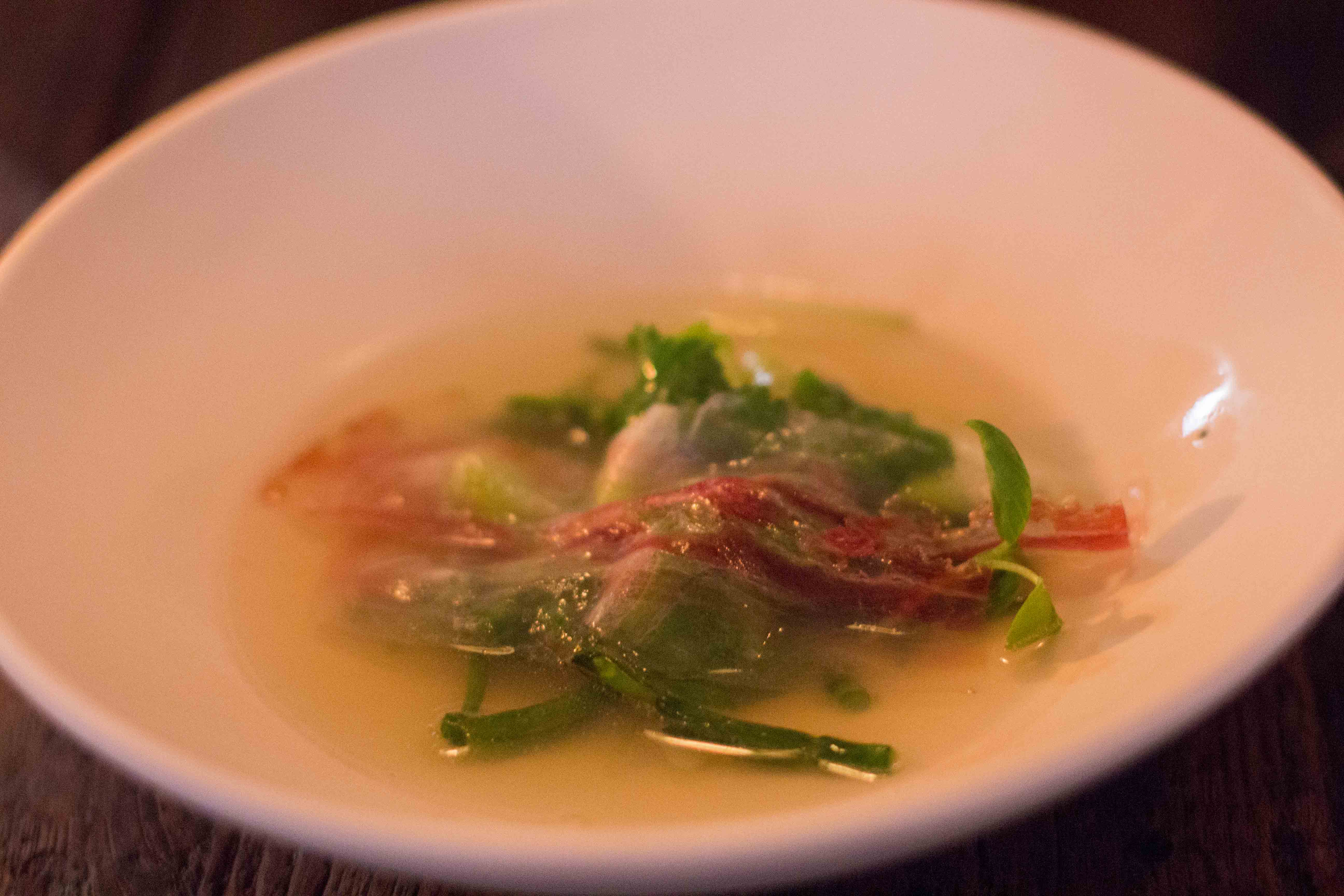 The menu changes daily and there is no course listing on the table to inform the diner the plan for the evening. Normally I’m not into being surprised, but what could I do? My only concern was that without knowing what dishes would come out, I wasn’t sure what to drink. Lucky enough their sommelier was super helpful with choosing thoughtful wines by the glass that paired well with a few dishes at a time.